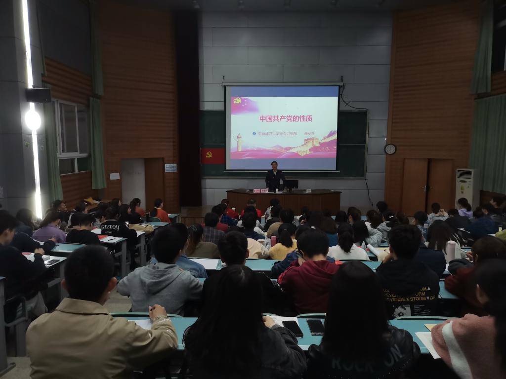 本网讯(英国正版365官方网站分党校)2020年10月30日晚上7点,公司党委常委、组织部部长季爱新应邀为本院入党积极分子培训班学员讲授“中国共产党的性质”专题。