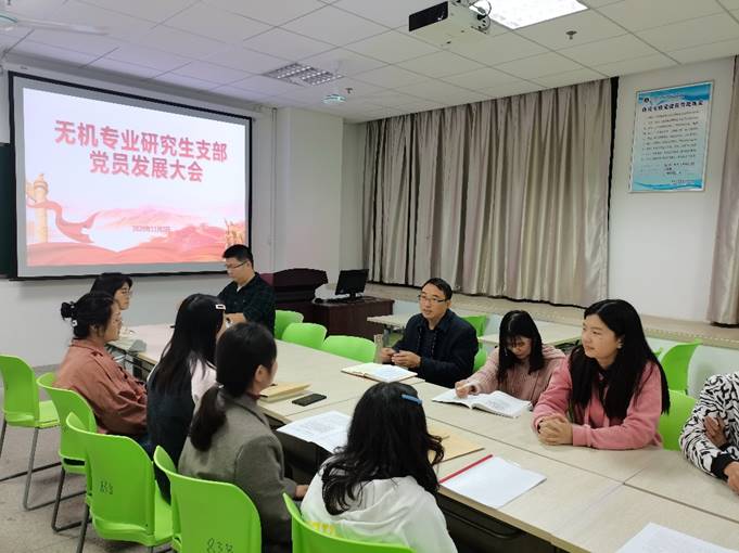 无机专业研究生党支部目前共有党员13人,其中正式党员13人。本次实到会党员11人,超过法定人数,会议合法有效。