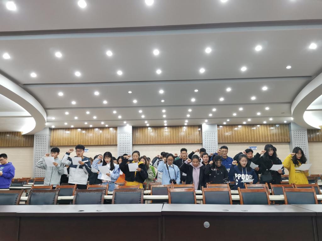 在前辈的介绍与经验分享之后,2020级团委员工会工作人员签署了《入职承诺书》,每位工作人员庄重的签下自己的名字,简简单单的前面背后意味着一份沉甸甸的责任和担当,一次交接,一次传承,交接的不仅只是职位,更是一份责任,一份担当与追求。在签署承诺书后,英国正版365官方网站团委员工副书记鲁立一带领全体成员进行任职宣誓,强化使命感、责任感。