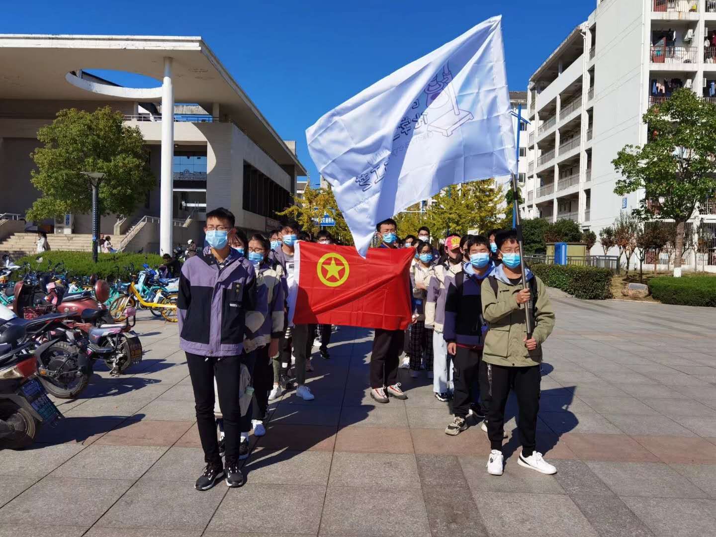 11月4日下午一点,同学们在西门集合,由班长张远志和学习委员杜文萍组织带领全班同学分成两队进行站队点名。同时,团小组组长尹子奇带领组员开展团日活动。