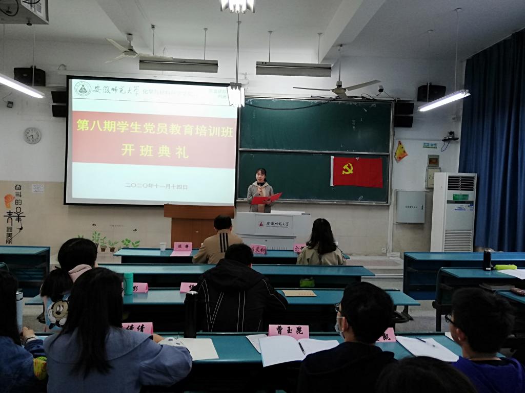 典礼在庄严的国歌声中拉开序幕。闫蒙钢向全体学员宣读了公司党委关于同意举办第8期党员教育培训班的文件以及培训班班委会的任职安排。陈静对本期党员培训班班委会工作制度、考勤制度、学习制度、考核制度、评优制度等班级管理制度进行了详细的解读。2017级化学师范专业石心怡同学作为学员代表发言,她号召青年党员同学要不忘初心、牢记使命,时刻以党员的标准严格要求自己,在日常的学习、生活和工作中努力争做先锋模范,为实现中华民族伟大复兴的中国梦贡献党员的青春力量。余妍霞在动员讲话中指出,公司党校是培养培训青年马克思主义的重要阵地,也是优秀青年员工深入学习党的基本理论知识、强化理想信念教育,了解中国共产党、认识中国共产党的生动课堂。她希望全体学员珍惜学习机会,用心学习,把学习培训作为重温经典的读书会;强化入党动机,深入学习,把学习培训作为锤炼党性的精神高地;严守纪律要求,认真学习,把学习培训作为领会初心使命的生动课堂。开班仪式上,全体党员还共同重温了入党誓词。