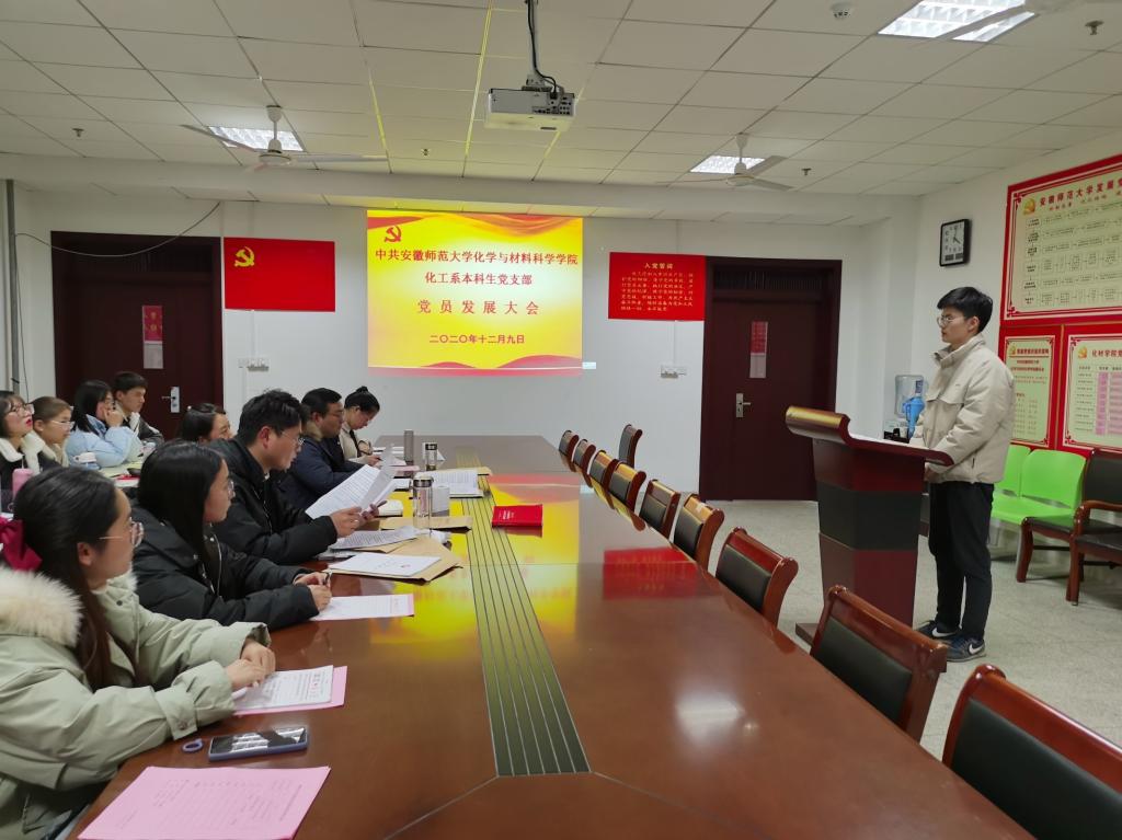 本网讯(化工系本科生党支部 沈欣怡)12月9日下午两点半,化工系本科生党支部于礼勤楼707党员活动室召开本年度第二批党员发展大会。公司党委副书记余妍霞,辅导员陶勇受邀出席本次党员发展大会,支部全体党员、预备党员与发展对象参加会议,会议由支部书记程紫丹主持。