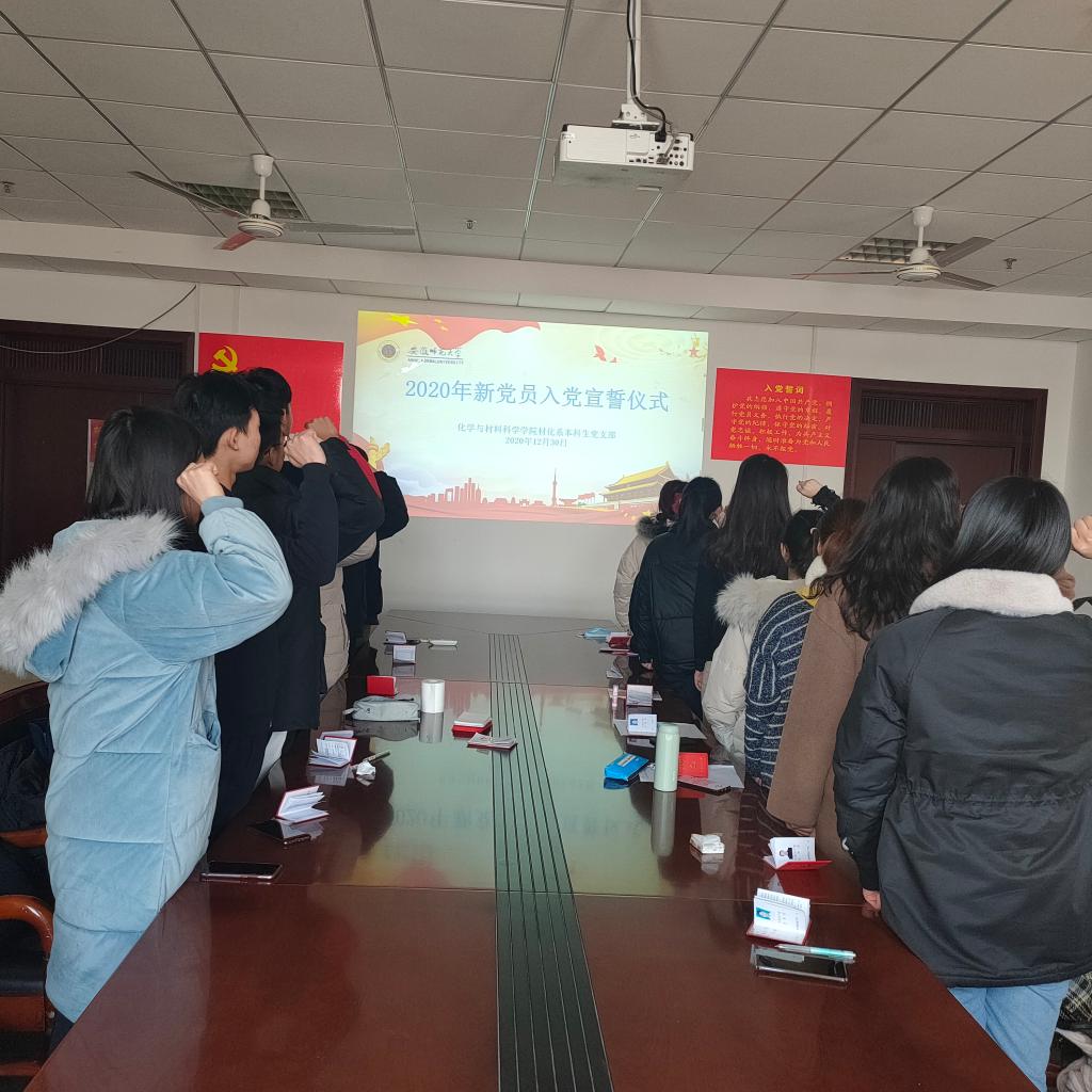 2020年12月30日下午3点,公司在化材楼707举行了2020年下半年新党员入党宣誓仪式,材化系本科生党支部书记及17名新发展党员参加了宣誓仪式,活动由材化系本科生党支部书记王芳主持。
