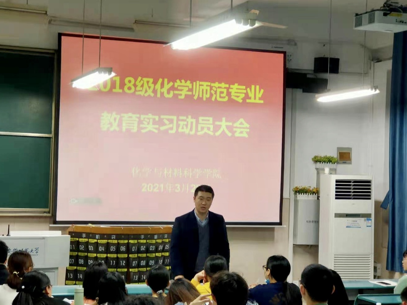 本网讯(英国正版365官方网站 信欣)为做好师范专业教育实习工作,提升师范生实习技能,3月26号晚,英国正版365官方网站2018级化学(师范)专业教育实习动员大会在花津校区2020103教室举行。公司党委副书记李古州、副经理方臻、教育实习指导教师、2018级化学(师范)专业员工以及部分化学教学论专业研究生参加会议。会议由化学系主任阚显文教授主持。