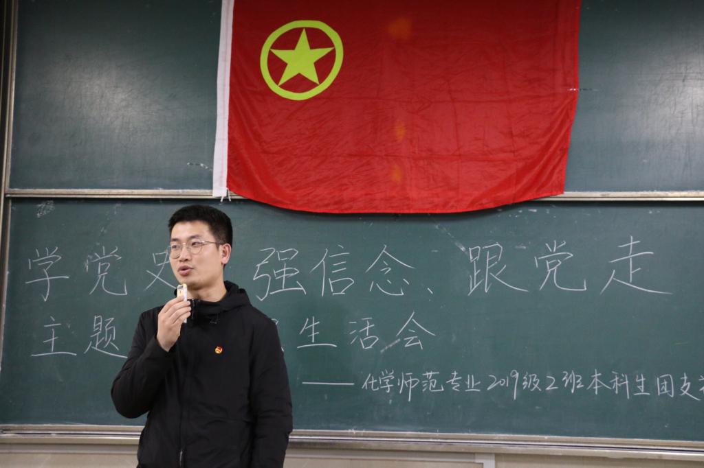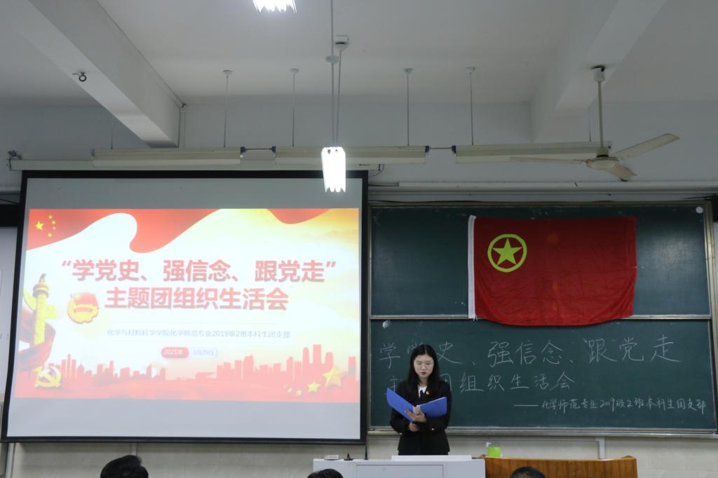 本网讯(英国正版365官方网站)为提升基层团支部组织力,进一步增强团组织的吸引力、凝聚力和战斗力,3月29日晚7点在花津校区2010502教室,2019级化学师范专业二班本科生团支部组织开展了“学党史,强信念,跟党走”主题团组织生活会。校团委副书记陈骁、公司党委副书记李古州、院团委书记陶勇、辅导员周冬冬和全支部全体成员参加会议。会议由团支部书记周昱晨主持。