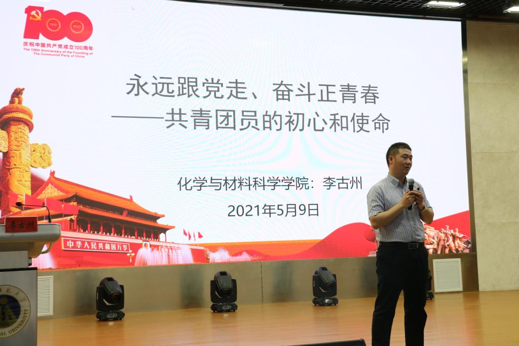 李古州结合学习习近平总书记考察清华大学时的重要讲话精神和安徽省委副书记程丽华在全省“学党史 强信念 跟党走”主题团日活动上的讲话精神,从“共青团的初心和使命、新时代青年的新使命、青年不忘初心跟党走”三个方面,作了题为《永远跟党走 奋斗正青春——共青团员的初心和使命》的主题团课,阐明了坚定不移跟党走就是共青团的初心,为党和人民不懈奋斗就是共青团的使命。报告通过大量事例,引导广大青年学子要认真结合团系统“学党史、强信念、跟党走”学习教育,做一个爱国爱民、锤炼品德、勇于创新、实学实干的人,要用坚定的信仰守护精神的家园、务实的作风锤炼高尚的品德、扎实的学识照亮前行的道路、勤劳的双手创造美好的未来,争做一名优秀的青年老员工。