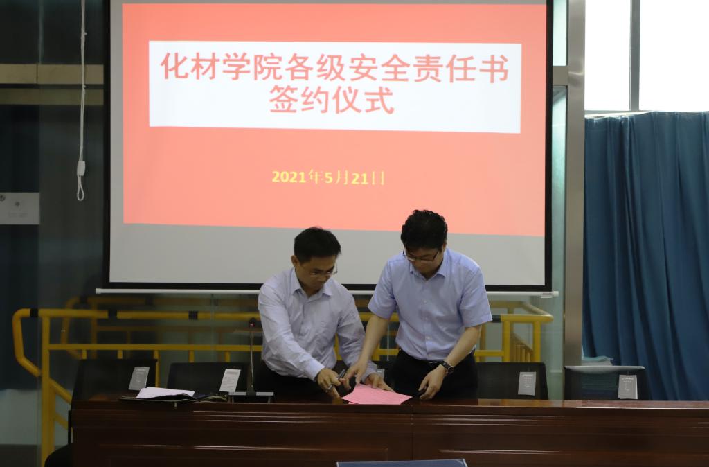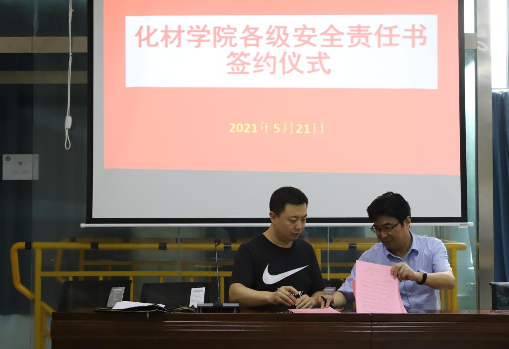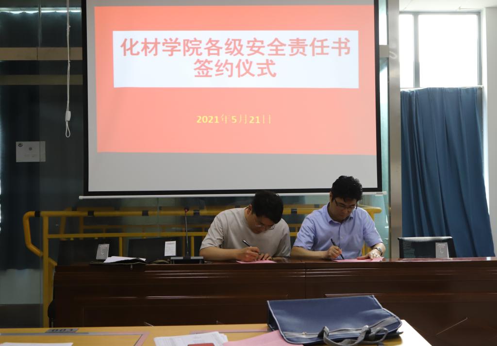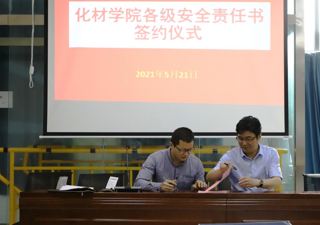 经理高峰代表公司分别与科研实验室安全责任人周映华、本科实验室安全责任人王淦、药品仓库安全责任人魏杰顶、辅导员安全责任人代表陶勇签订了安全责任书。