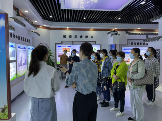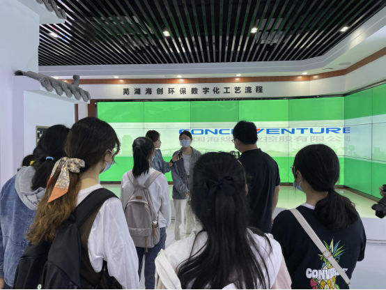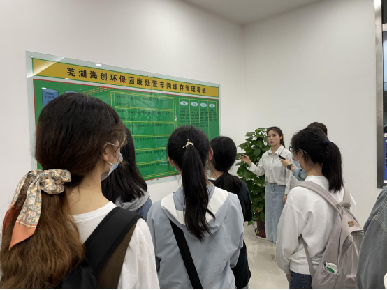 师生们来到企业项目沙盘,了解环保项目整体情况,公司自主研发的利用水泥窑协同处置工业固废危废技术,燃烧温度高、废物处理彻底、无灰渣排放、资源化利用程度高、对重金属固化效果好。在企业展厅同学们共同参观学习了固废危废情况、国内外固废危废现状,并观看了利用水泥窑协同处置固废危废宣传片。在中央控制室,详细了解设备运行情况,学习芜湖海创环保固废处置车间库存管理等。