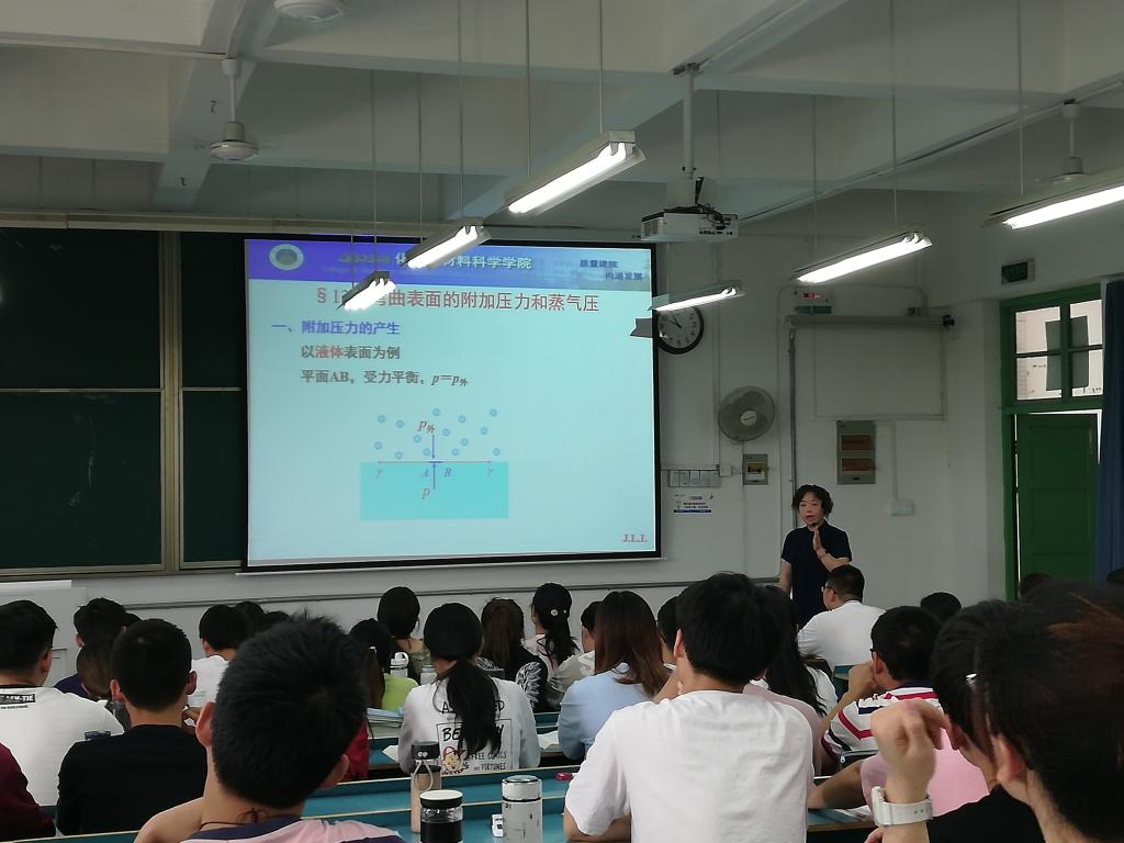 本网讯(英国正版365官方网站唐丽君)6月2日上午,金莉莉老师在行知楼2010201教室进行本科教学公开课,为2019级材料化学专业的同学讲授《物理化学》中“界面现象”相关内容。公司部分领导、校督导团、公司督导组老师及部分教师参加了此次课程观摩活动。