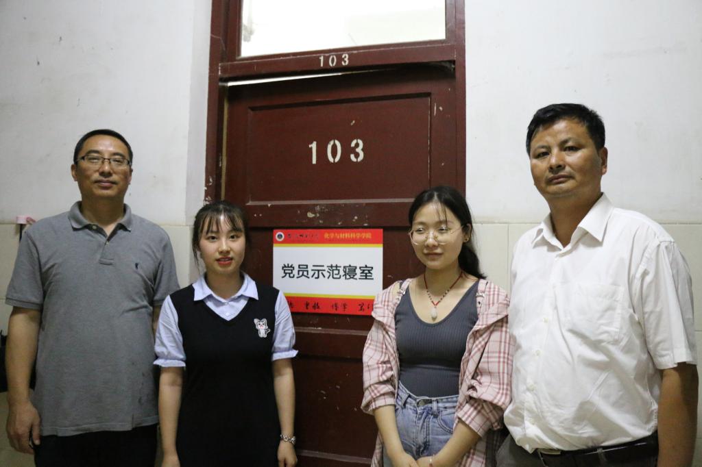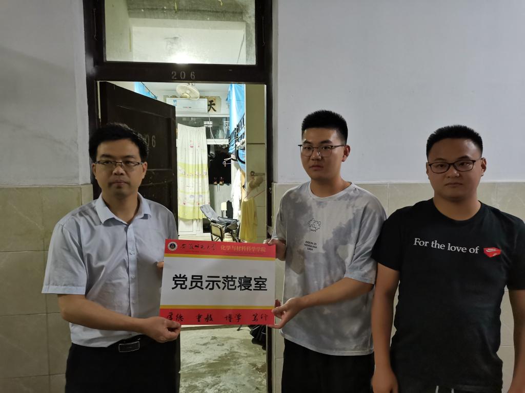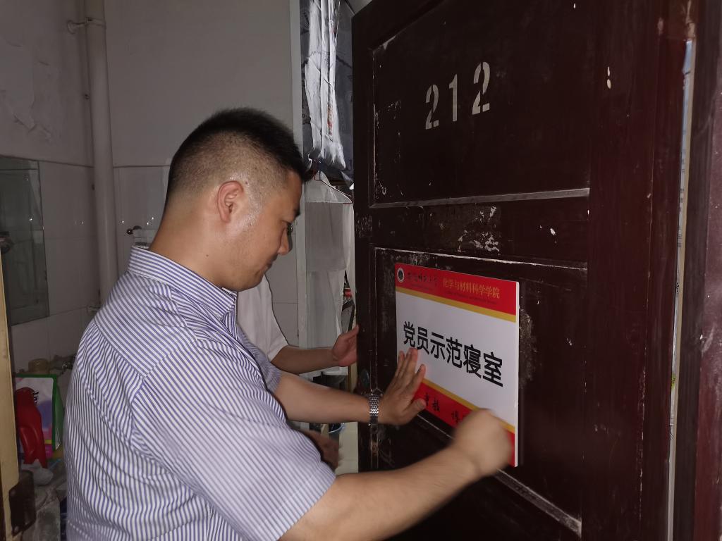 领导老师们深入员工宿舍,为党员寝室挂牌、亮身份,在挂牌过程中强调,党员要在和谐宿舍创建工作中充分发挥先锋模范作用,以实际行动影响和带动其他员工养成良好的行为规范,努力营造干净舒适的学习生活氛围,促进学风建设和员工健康成长。员工党员们也立志严格要求自己,遵守各项规章制度,加强室风建设,彰显化材学子青春风采。
