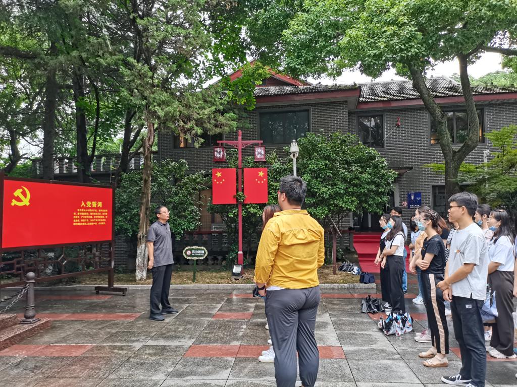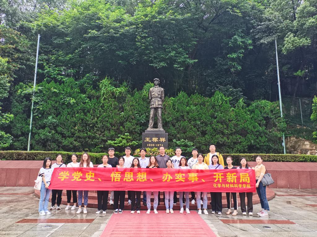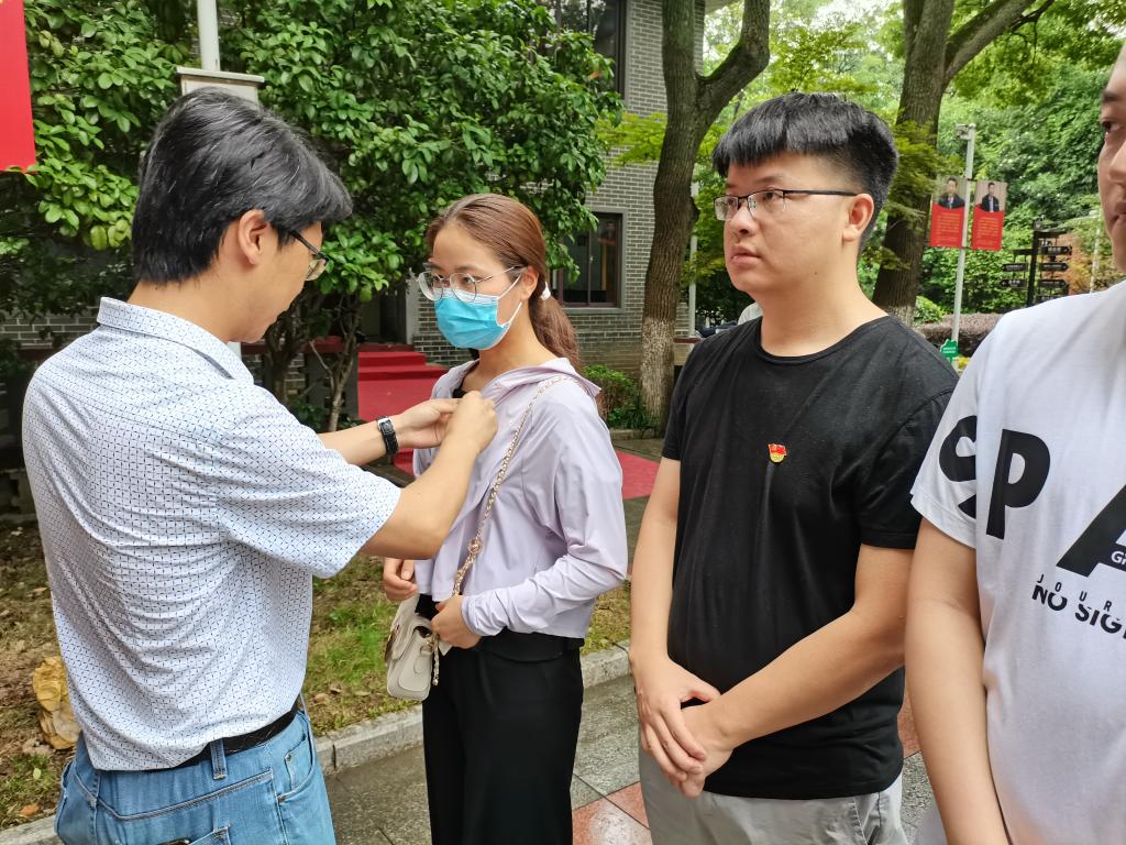 在王稼祥同志的半身铜像下,杨琨同志为我们上了一堂生动的党课——《关键时刻对党做出重大贡献的王稼祥》,通过三个“关键时刻”向大家展示了老一辈革命家身上共产党人的使命与担当。随后崔鹏老师为本次新发展党员佩戴了党员徽章,接着材料及材料物理支部书记丁高飞同志带领全体党员重温了入党誓词,一句句铿锵的誓言深深震撼着与会党员的内心。汪俊武书记在讲话中指出,这次主题党日虽短暂却意义非凡,党和人民永远铭记王稼祥同志的光辉业绩和崇高风范。利用身边的红色资源开展党史学习教育实践活动,能够让我们更好的理解中国共产党为什么“能”,马克思主义为什么“行”,中国特色社会主义为什么“好”。