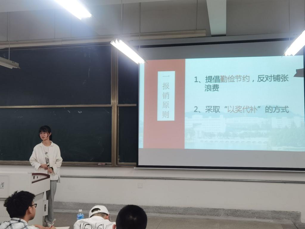 郑旭红就实践团队的财务问题进行专题培训,她从报销原则、报销要求、报销流程及注意事项四个方面对全体与会人员进行了详细介绍,并就一些常见问题做出了解释与回答。