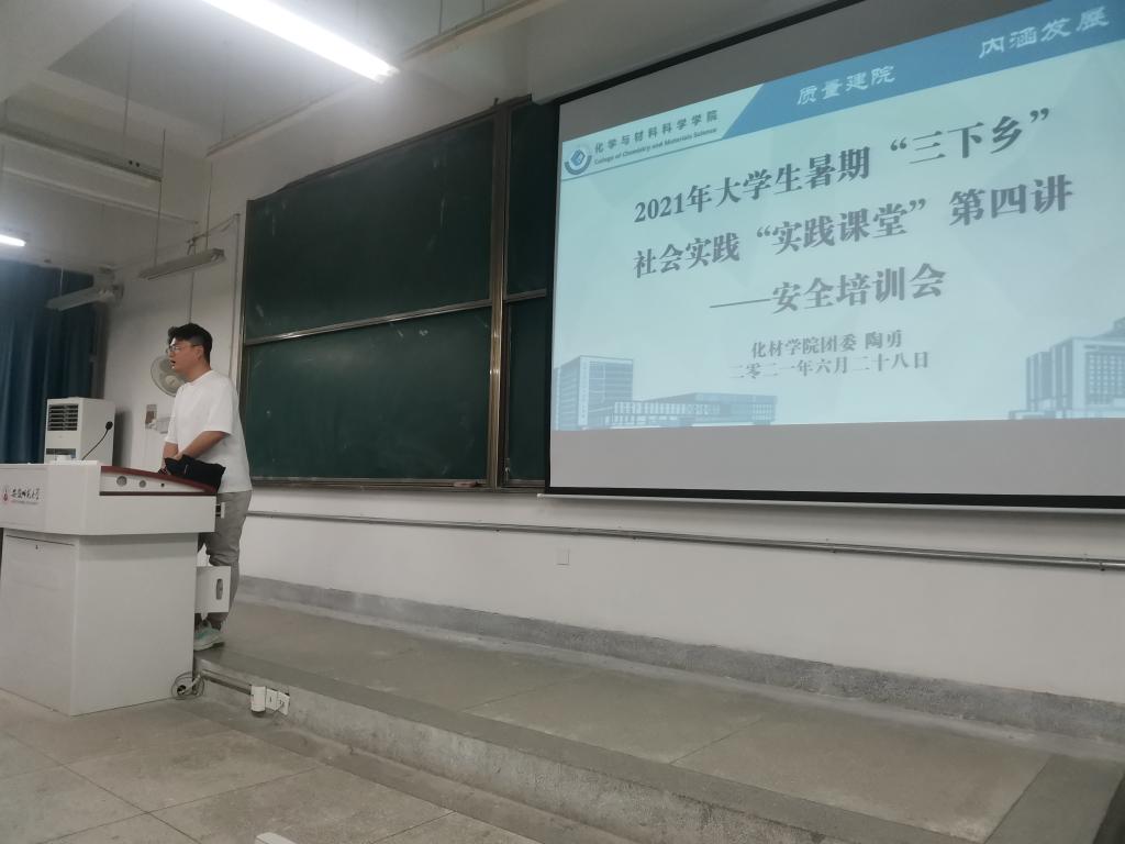 6月28日晚,公司于行知楼2070201教室召开了社会实践“实践课堂”第四讲——安全培训会、第五讲——财务培训会,培训会分别由院团委书记陶勇、院团委办公室部长郑旭红主讲,指导老师代表王芳、曹右林,段传钦,各实践团队队长、安全员、财务员参加了此次培训会。