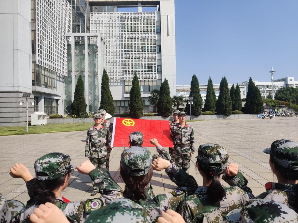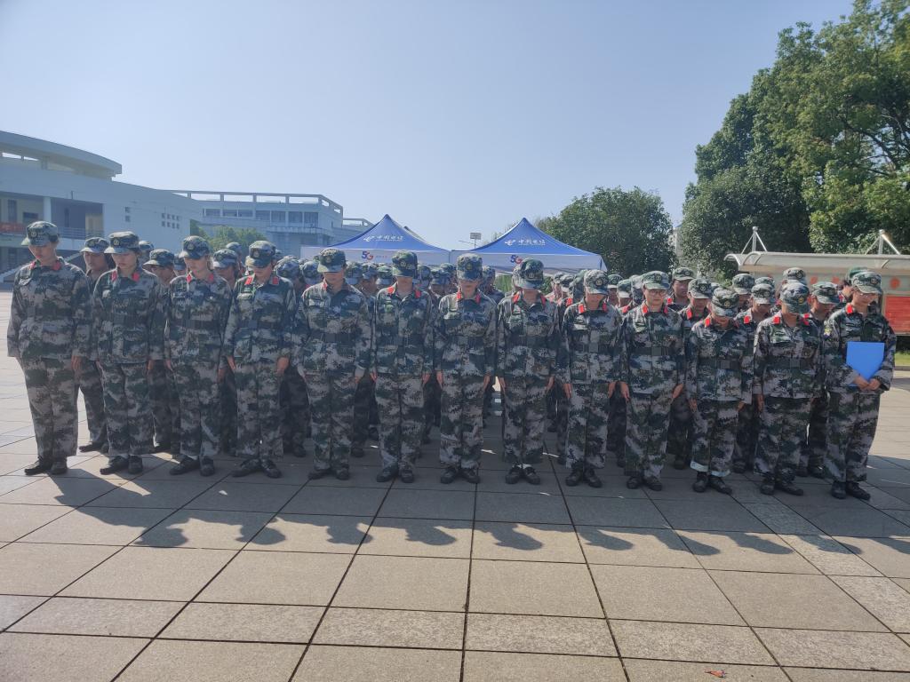伴随防空警报声响起,全体助训教官、辅导员和参训员工集体默哀三分钟,表达对先烈缅怀之情。默哀结束后,全体新生在团旗面前高举右拳,在领誓员的带领下,面对庄严高举的团旗重温“入团誓词”。