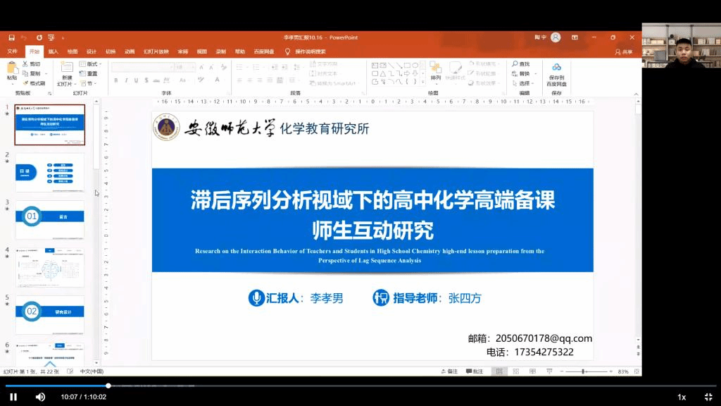 此次会议采用线上、线下结合的方式展开,交流形式丰富多样。北京师范大学王磊教授主持大会报告,会议邀请新加坡南洋理工大学Dr. Daniel Tan教授、山东师范大学毕华林教授分别做题为《Science education research in Singapore》、《化学学科育人价值分析及育人体系建构》的特邀报告。随后,开展了4场线下分论坛报告、网络论坛报告及化学教育硕士工作坊圆桌会议,期间本领域专业教师、研究生做多场分会场报告,包括山东师范大学博士胡欣阳、华南师范大学博士麦裕华、北京师范大学博士王全分别作题为《微观史学视域下化学科学大概念研究》、《应用潜在类别分析和Apriori算法探讨高二员工对化学平衡的认识》、《基于新课标的高中生必修无机物主题学业质量评价研究》的报告。公司2019级课程与教学(化学)专业硕士研究生王磊做题为《不同类型视觉表征对初中化学学习的影响研究——以化学反应为例》的线下分论坛报告、同级研究生李孝男做题为《滞后序列分析视域下的高中化学高端备课师生互动行为研究》的线上报告。孙影老师参与了化学教育硕士培养工作坊圆桌会议,并交流了公司化学专业学位研究生人才培养学制等工作经验。