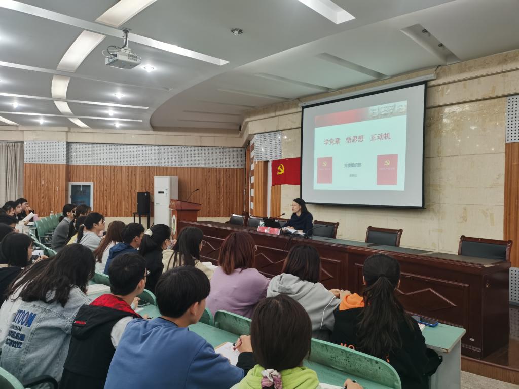 公司党委组织部副部长余妍霞作《学党史、悟思想、正动机》的专题报告。她通过影片和文字资料讲述了6个共产党人用生命守卫信仰,用热血践行使命的动人故事,学员们真切感受到共产党人践行党章的初心和使命。余部长详细介绍了党章的历史沿革和主要内容,让同学们深刻领会到党章的基本内容以及深刻内涵,通过看《榜样》有所触动,学《中国共产党章程》有所启发,从而不断端正入党动机。