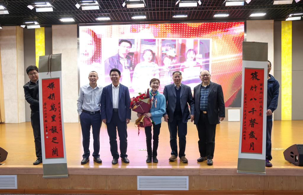 员工代表赵刚在致辞中表达了对恩师多年来培养的感谢之情,深情回忆了谢老师对员工给予的悉心指导和无私帮助。在谢老师耐心、严谨的培养下,打下扎实的理论知识和严谨的实验操作功底,为之后的研究奠定了基础,受益终生。紧接着,4位员工共同向谢筱娟老师致敬献花。刘心元员工送上自己所作对联“筱竹八千馨岁月,婵娟万里馥芝兰”。