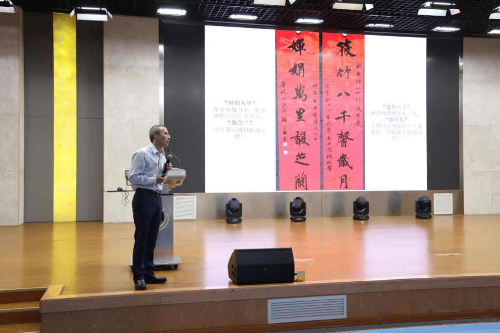 熊宇杰在致辞中向谢筱娟老师表示美好的祝福,对各位员工和嘉宾的到来表示诚挚的欢迎,感谢各位员工长期以来对公司事业发展特别是化学团队建设的关心支持。他指出,谢筱娟老师是我们非常敬重的一位老教师,她始终把教书育人作为自己的毕生追求,用真心真情践行立德树人的职责使命。我们要学习谢老师坚守初心使命、潜心教书育人的精神。同时,公司举办专题学术报告会,开展有机化学前沿论坛,对于推进“功能分子固体”教育部重点实验室和化学团队建设发展,培养造就更多更优秀的化学专业人才具有重要作用。