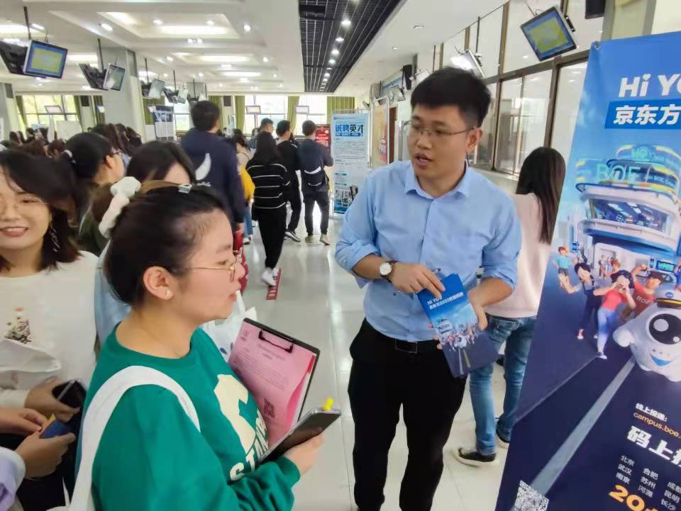 集团社会合作处副处长、员工工作办公室副主任史铁杰,人才招聘处副处长刘振杰,公司党委书记汪俊武、经理高峰、党委副书记李古州及毕业班辅导员深入招聘现场与合肥新站高新区人事劳动局人力资源服务中心副主任彭俊及用人单位亲切交谈,并指导员工们现场投递简历。