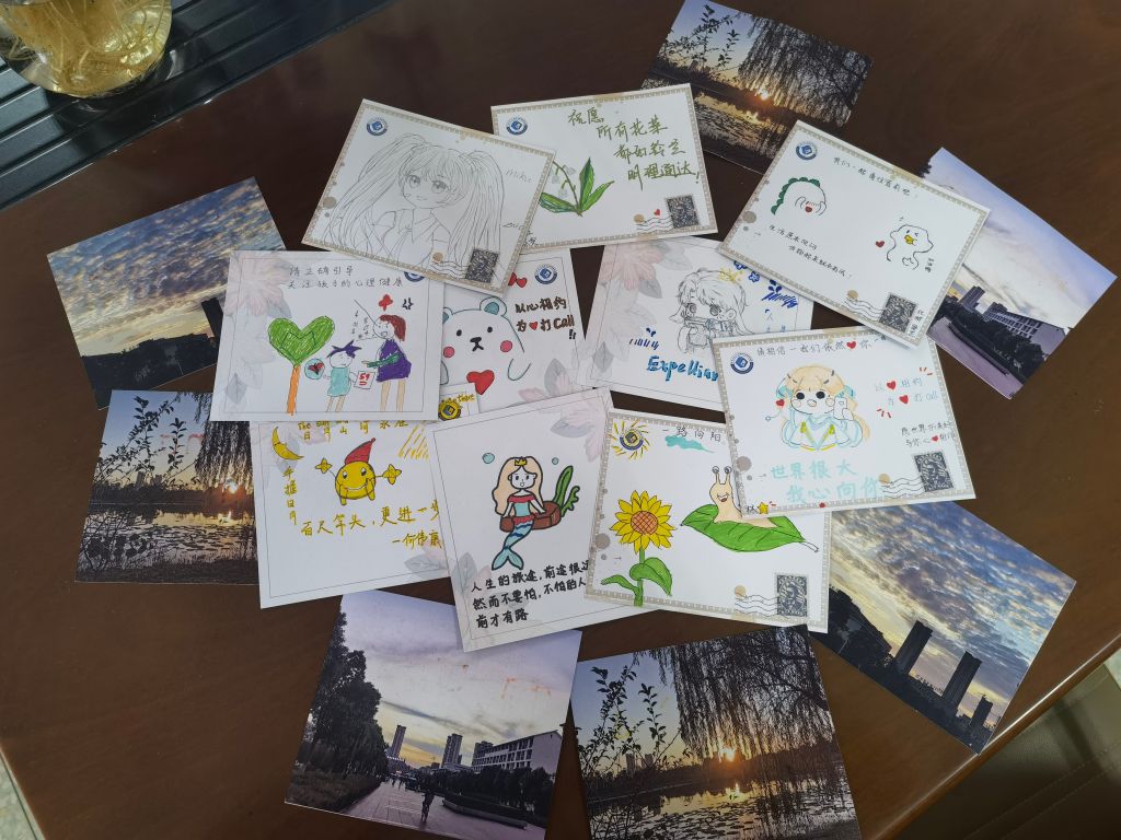 10月25日中午,在礼勤楼二楼开展了心理明信片活动,同学们在专属的师大风景明信片上写上了自己的心灵寄语,抒发了自己内心深处的声音。有些同学还在明信片上添上了可爱的卡通画,让真挚的话语变得更加生动活泼。公司老员工发展辅导站还在公司二楼设置心理专题图书角,为同学们提供心理专题读物。心扉洞开,书信传声;小小的明信片,承载着满满的温情与信任。