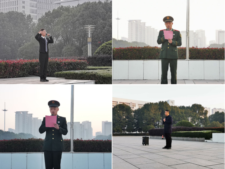 2021级学科教学(化学)专业研究生吴红波作为退役老员工发言,他说升旗仪式是庄严肃穆的,国旗代表的并不仅仅是简单的一面旗帜,国旗是我们祖国站起来强起来的象征,是我们爱国主义精神承载的支柱,更是我们每个中华儿女心中最纯洁最神圣最不容侵犯的情怀与担当。天下兴亡,匹夫有责,位卑未敢忘忧国,如今的美好生活是前辈先烈们前仆后继用鲜血换来的,我们要心怀爱国情怀,肩负起新时代青年人的使命。