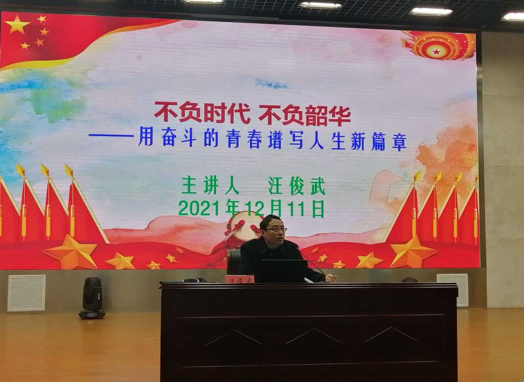 汪俊武向同学们分享自己的老员工活,对于同学们大学里要做哪些有意义的事,给出了自己的建议。他指出,广大青年员工要积极主动,尽快适应老员工活;认可接受,合理规划老员工涯;不忘初心,努力实现人生目标。他强调,青春是用来奋斗的,奋斗的青春最美丽!所有同学都要努力做一个清醒、清楚的主人,不做糊涂、茫然的过客。希望同学们走实、走稳、走好大学的路,走好人生的路!