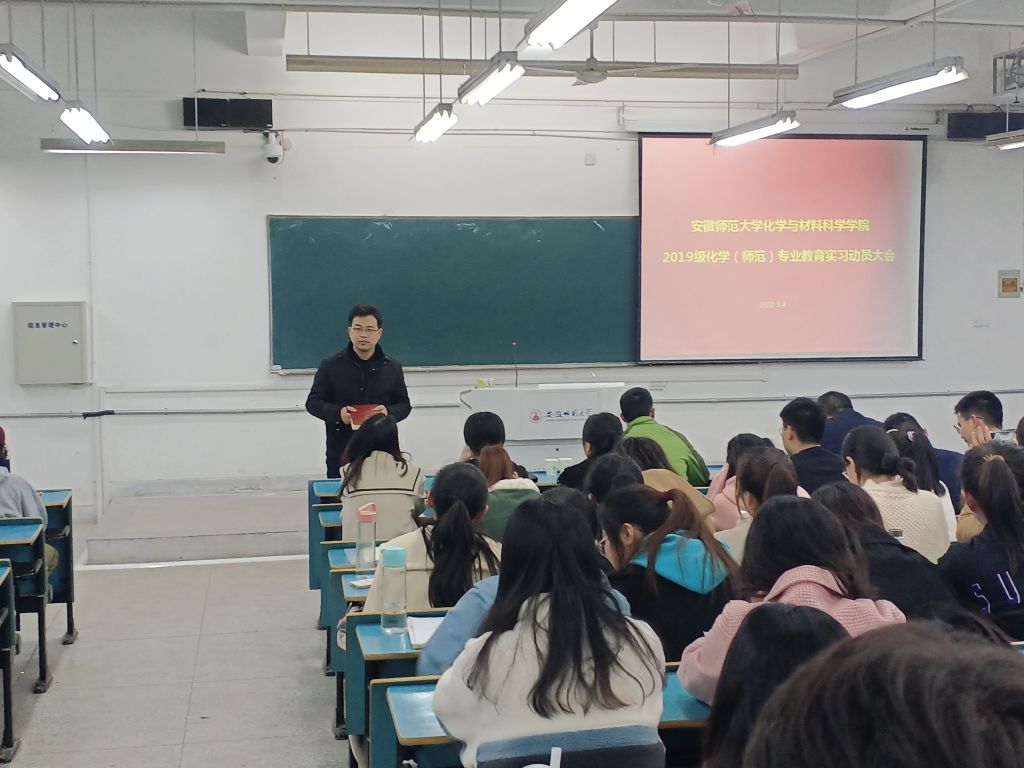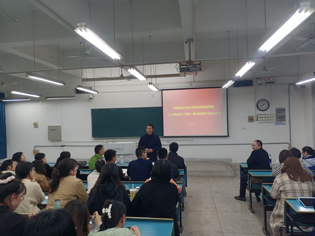 本网讯(英国正版365官方网站 韩莎莎)为做好2019级化学师范专业的教育实习工作,于2022年3月4日晚上7点,在花津校区2070101教室举行教育实习动员大会。公司党委副书记李古州、副经理方臻、教育实习指导教师(孙影教授、王素凡教授、程瑶琴老师、张四方老师、周冬冬老师、信欣老师)、2019级化学(师范)专业员工及部分化学教学论研究生参加了此次会议。会议由英国正版365官方网站阙荣辉老师主持。