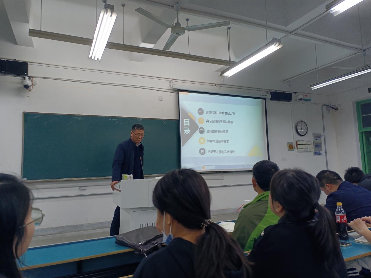 毛宣海老师围绕“做好角色转换 培养教学智慧”对本科师范生提出了关于实习工作的思考和建议。首先,毛老师通过教育部相关文件分析了教育新形式和新高考改革的挑战,针对员工在实习生活和工作中面临的问题提出以下建议,在教学中要做到“心中有标、宽严并济”,做好“备课、教学、作业布置批改、教学研究、分析考试测试质量”五个环节的工作。在生活中要做到“礼貌真诚,虚心求教”,更要具有责任、希望和爱心。 最后,毛老师总结了自己多年的工作经验,认为一个教师的成长路径应该是“成就于写、得益于思、源自于行、筑基于读”。报告结束后,毛老师积极地回答了员工关于实习过程中的其他疑惑。