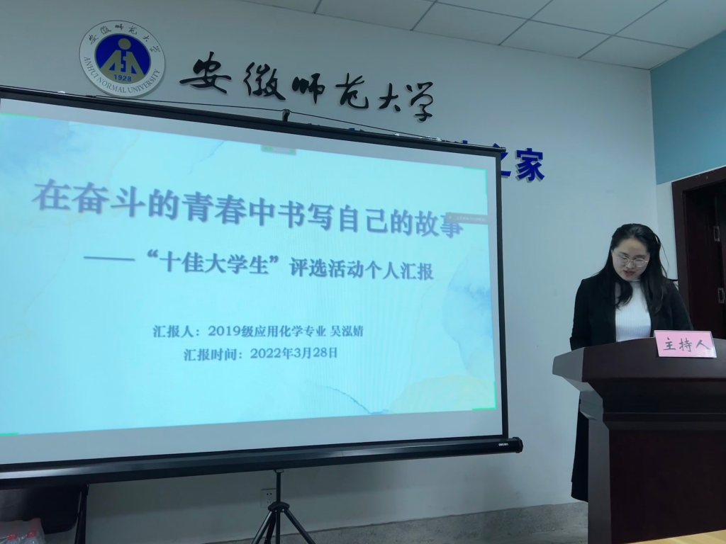 员工通过个人申报,班级评选,最终进入院级“十佳老员工”评选汇报会。他们精心准备,用PPT分别从智育成绩、志愿服务、社会实践、科研工作等方面进行展示,充分体现了“十佳老员工”优异的并不只是成绩,更是在日常校园生活以及社会实践等各个方面有着优异表现。他们之中不乏有苦心钻研学术,致力于在专业领域中展现出自己的一番风采;或是热心公益,期盼在奉献之中寻找到自身的人身价值;亦或是投身于社会实践,在切身的实践中领悟应承担的社会责任。