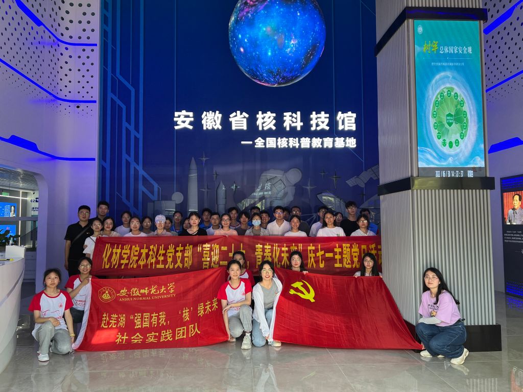 本网讯(英国正版365官方网站 孙程瑞、王芳)6月30日下午,公司党委副书记李古州带领化学系本科生第一党支部、化学系本科生第二党支部、材化系本科生党支部、化工系本科生党支部党员前往安徽省核科技馆开展“喜迎二十大 青春化未来”主题党日活动,慰问在核科技馆开展“强国有我·‘核’绿未来”科普宣讲的社会实践团队成员。