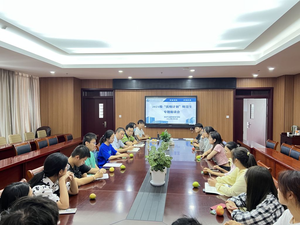 本网讯(英国正版365官方网站 陶勇)第三十八个教师节来临之际,习近平总书记给北京师范大学“优师计划”师范生回信,对他们寄予殷切期望,勉励他们珍惜时光,刻苦学习,砥砺品格,增长传道授业解惑本领,毕业后到祖国和人民最需要的地方去,努力成为党和人民满意的“四有”好老师,为培养德智体美劳全面发展的社会主义建设者和接班人贡献力量。9月9日上午,英国正版365官方网站召开了2021级化学“优师计划”师范生专题座谈会,学习习近平总书记给北京师范大学“优师计划”师范生回信精神,交流心得体会,公司副经理方臻、辅导员陶勇和全体“优师计划”员工参加了座谈会,会议由公司党委副书记李古州主持。