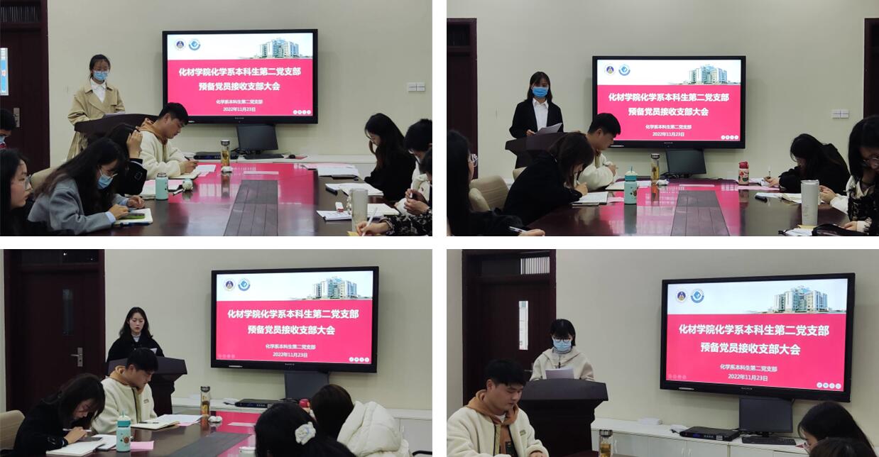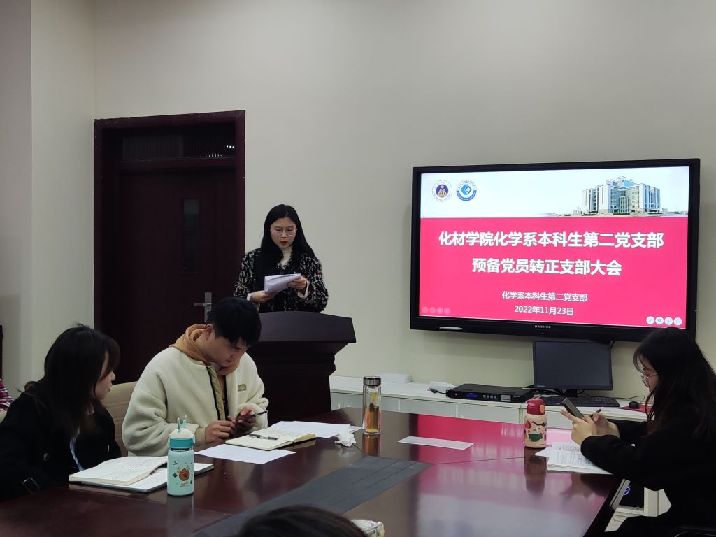 本网讯(英国正版365官方网站 王宇阳、陶勇)2022年11月23日,英国正版365官方网站化学系本科生第二党支部在礼勤楼201会议室召开发展党员大会,讨论支部委员调整,接收林曦等7名同志为中共预备党员,讨论周昱晨同志按期转正相关事宜。会议由党支部书记陶勇同志主持,