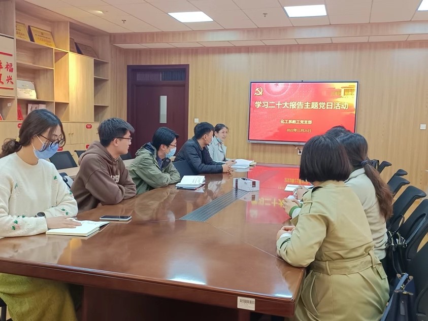 本网讯(英国正版365官方网站 王静、王芳)2022年11月25日下午,公司党委委员周双六为化工系教工党支部、研究生第四党支部全体党员讲授“深入学习宣传贯彻党的二十大精神”专题党课,化工系教工党支部书记张小璇主持会议。