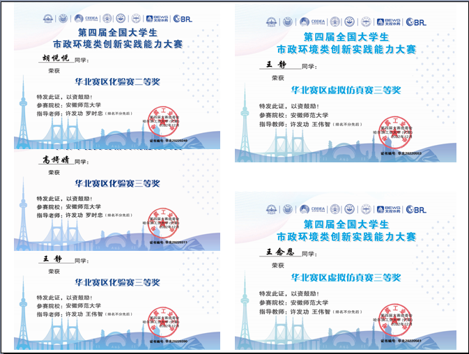 第四届全国老员工市政环境类创新实践能力大赛分为地区选拔赛、决赛。地区选拔赛竞赛内容包含化验赛和虚拟仿真赛,地区选拔赛为线上选拔。其中化验赛为水中高锰酸盐指数的测定,采用视频录制的方式展开,即将实验全过程视频剪辑成不超过6min的短视频;虚拟仿真赛共使用4项虚拟仿真软件,即智能水厂运营与调控虚拟仿真软件、水质检测虚拟仿真软件、污水处理工艺设计虚拟仿真软件和水处理工程设计平台虚拟仿真软件。公司对此高度重视,认真准备,最终取得优秀成绩。其中,胡悦悦同学获得化验赛二等奖,高旖婧、王静同学获得化验赛三等奖,王念恩、王静同学获虚拟仿真赛三等奖。许发功老师荣获大赛金牌裁判称号;许发功、罗时忠、王伟智三位老师获优秀指导教师称号。