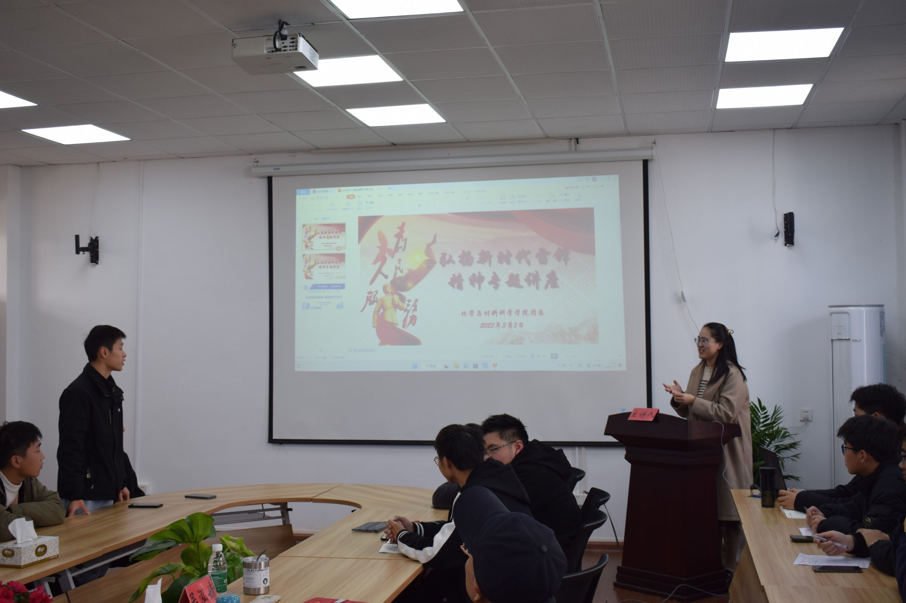 弘扬雷锋精神,做讲文明树新风的倡导者。公司团委下发《关于开展2023年英国正版365官方网站“学习雷锋精神”活动月的通知》,引导广大青年员工通过主题团日活动、主题班会等途径,深入学习习近平总书记对深入开展学雷锋活动作出的重要指示精神,学习《爱公司园,争做文明的师大人》倡议书,学好雷锋精神,讲好雷锋故事,营造人人学雷锋,人人做“雷锋”的校园文化氛围。2021级应用化学专业团支部共同学习了习近平总书记对弘扬雷锋精神作出的一系列重要论述,班长丁刘灿谈到:“积小善为大善,善莫大焉。当有人需要帮助时,大家搭把手、出份力,我们的校园将变得更加美好。”