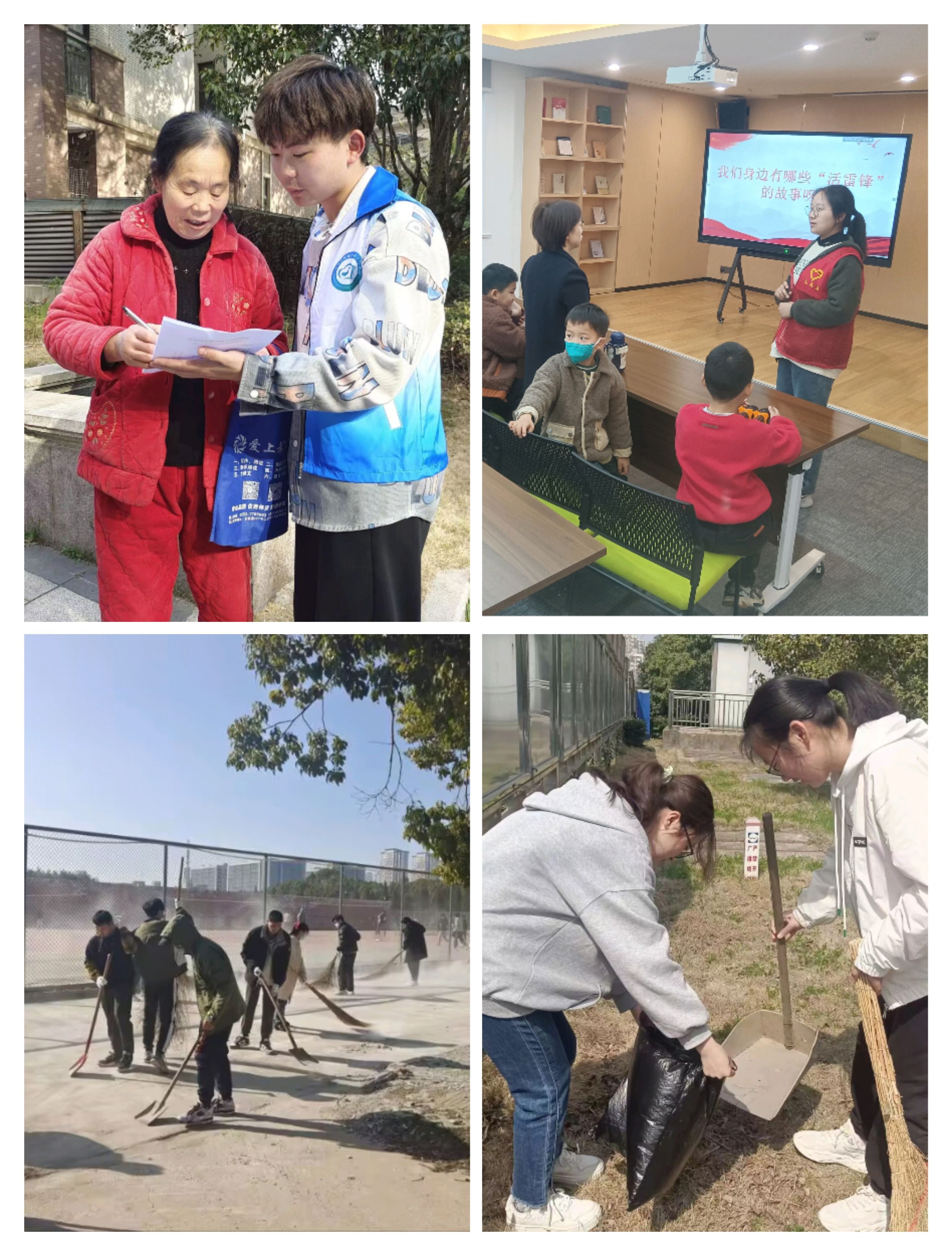 弘扬雷锋精神,做志愿服务活动的践行者。雷锋精神是一面永不褪色的旗帜,是一座永放光芒的灯塔。学雷锋不止于一时一事,而在于持之以恒。英国正版365官方网站以学雷锋纪念日为契机,常态化参与学雷锋志愿服务活动让学雷锋活动融入日常、化作经常,把学雷锋志愿服务做到你我身边,将雷锋精神内化为精神养料,做雷锋精神的践行者。一次校园清洁。老员工就业促进与互助协会组织志愿者开展美化校园环境的志愿活动,规范自行车、电动车摆放,整理桌椅,清扫楼道。参与劳动教育的员工立足岗位,从食堂服务到校园清洁,从门卫安保到绿化栽培,用心用情营造良好校园环境服务师生。一次社区帮扶。环境保护协会深入柏庄社区,积极调研社区环境状况,以垃圾分类为主题,制作科普宣传册,向社区居民志愿科普,讲解垃圾分类细则,助力垃圾分类实施。一场志愿宣讲。员工会成员前往马饮书房协助进行书籍整理,面向亲子读者开展“学雷锋,树新风”主题教育宣讲活动,从雷锋印象、精神内涵、重要论述、当代榜样等方面讲解雷锋故事,感悟雷锋精神。