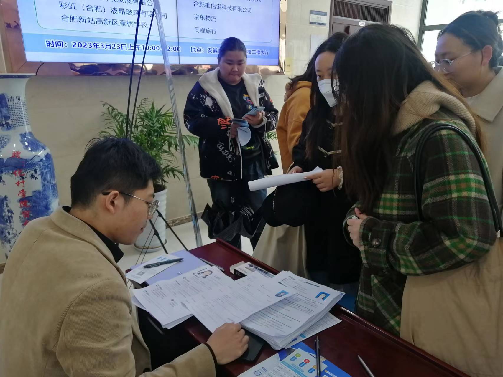 本网讯(英国正版365官方网站陈静)为更好搭建毕业生与用人单位的双向交流平台,切实推进毕业生就业工作,3月23日,英国正版365官方网站在礼勤楼二楼大厅举办了2023年“化有未来”行业+专业春季专场招聘会,合肥新站高新区人事局张婷组织区域内十余家优质企业来校招聘,提供就业岗位350多个,文理工科多专业本科生、研究生毕业生积极参会应聘。