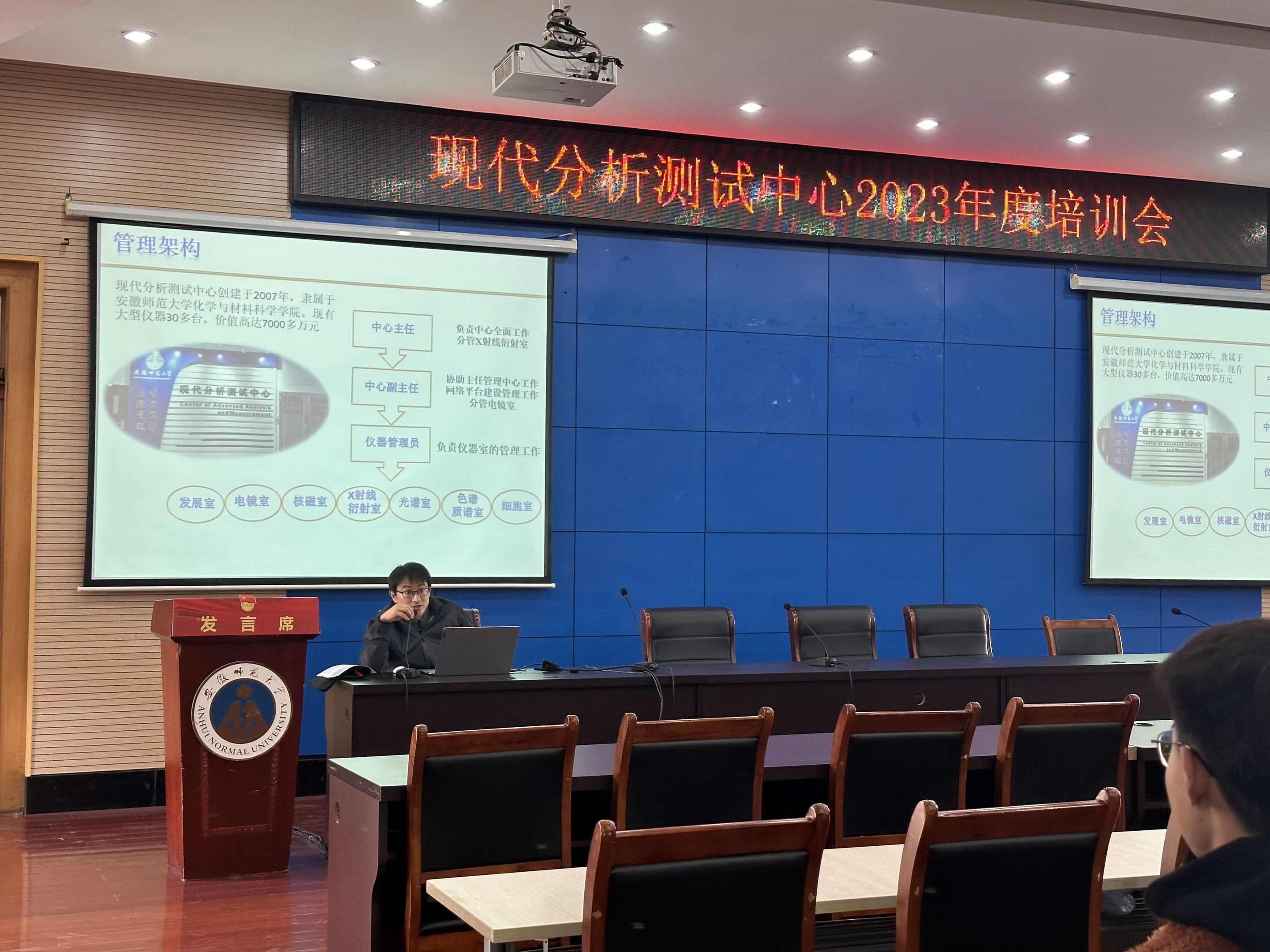 本网讯(英国正版365官方网站 余晨捷、张薇)为充分发挥公司大型仪器设备的使用效率,保证教学和科研工作的顺利进行,帮助新进教师与研究生充分了解现有大型精密仪器设备的状况、功能、应用及其基本操作,3月28日上午,英国正版365官方网站于花津校区会议中心第三报告厅举办现代分析测试中心2023年度大型仪器使用培训会。测试中心全体教师、2022年入职教师以及2022级全体研究生参加此次培训会,会议由测试中心副主任余楠主持。