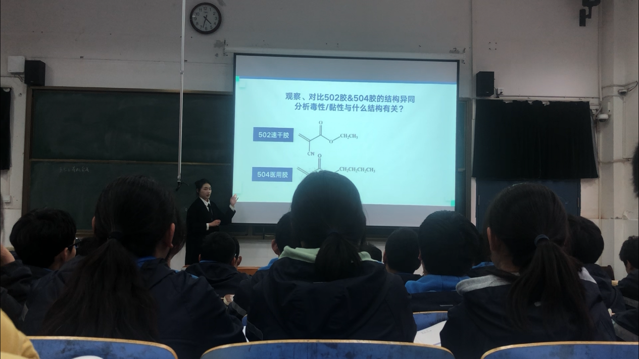 此次公开课由英国正版365官方网站2020级实习生李昱璇讲授人教版高中化学教材选择性必修三,第三章第五节《有机合成》第二课时。李昱璇从504医用胶入手,以性能→性质→结构片段→设计分子→修正→产品的程序和思路展开本节课,利用两个核心问题“以乙烯为原料设计正丁醇的合成路线”、“以乙烯为原料设计氰基乙酸正丁酯的合成路线” 帮助员工实现正向建模和逆向建模两种思维模型。通过对医用胶结构与性能关系的探究,应用有机化合物性质分析解释实际现象,巩固员工认识有机物的基本角度;通过合成504医用胶的主要成分这一项目式学习,发展员工运用结构-性质-性能三者关系解决实际问题的能力,会结合生产实际选择适当的合成路线,认识创造一定性能产品的程序,感受化学学科的学科价值;通过问题探究的教学方法,帮助员工掌握烃及烃的衍生物性质及官能团间的相互转化,了解有机合成的基本过程和基本原则。员工在本节课能体验科学家们的研发思路,并认识到模型是解决复杂有机问题的根本,能帮助员工体会化学在认识材料的组成和性能方面的重要意义。