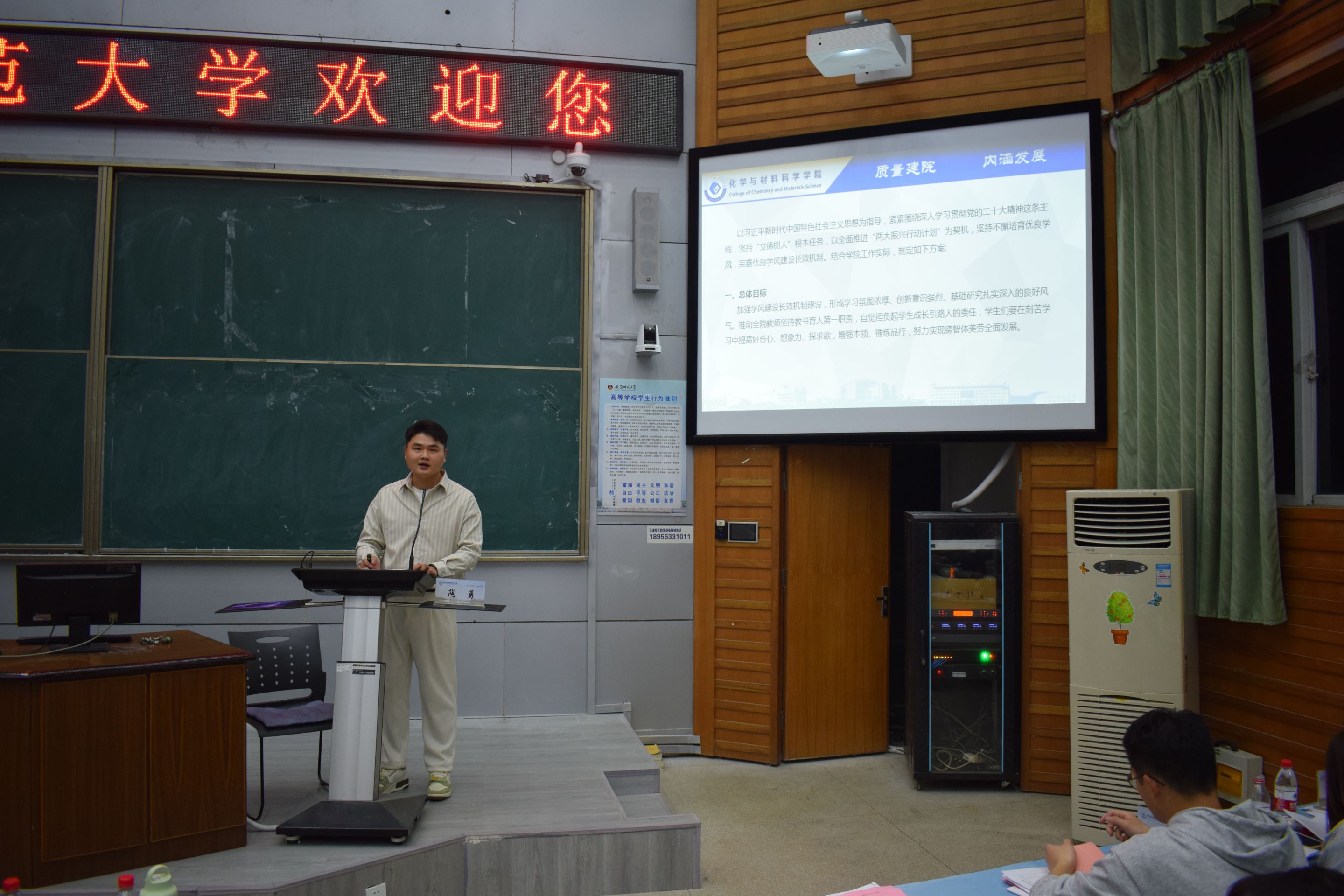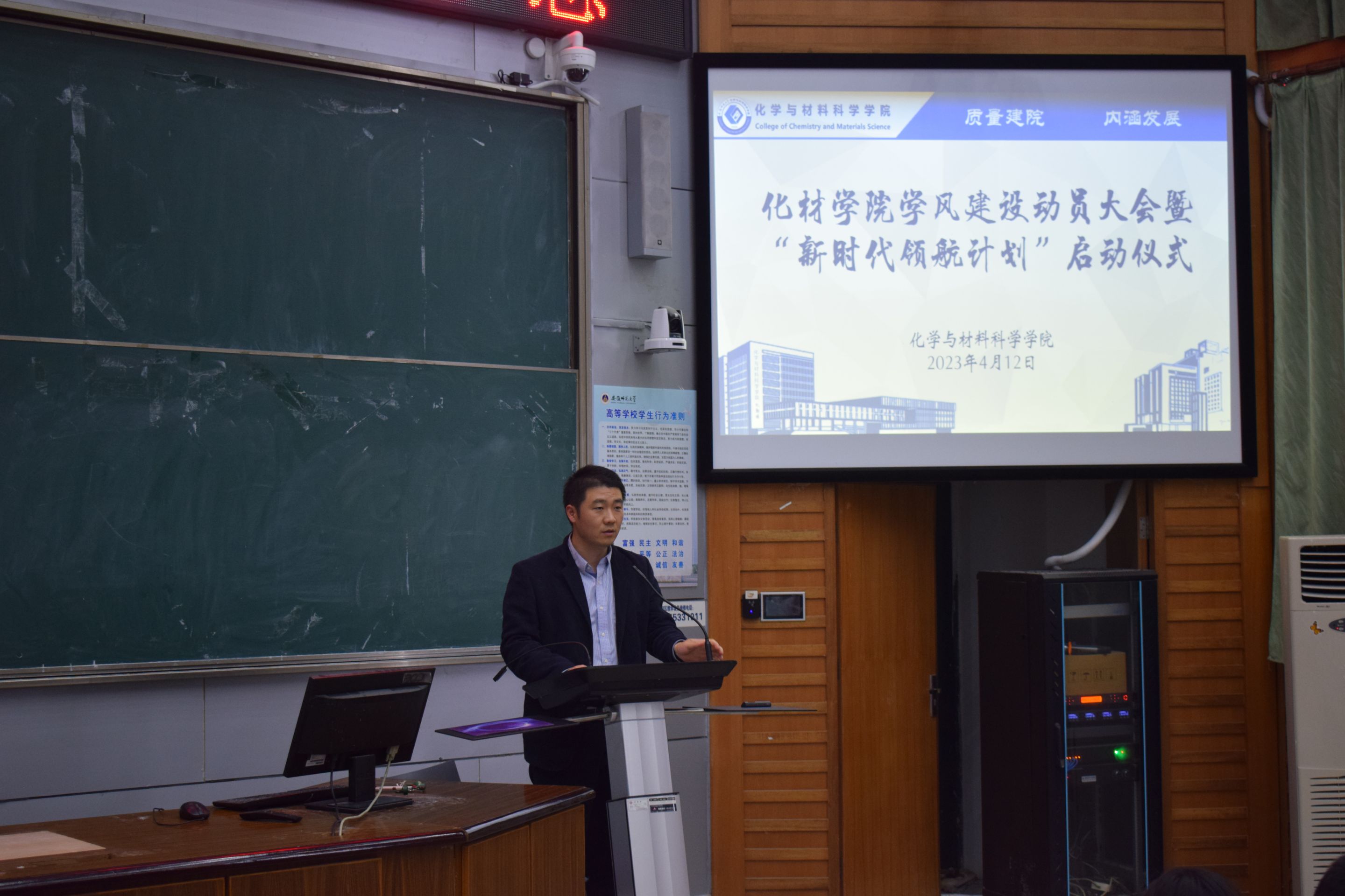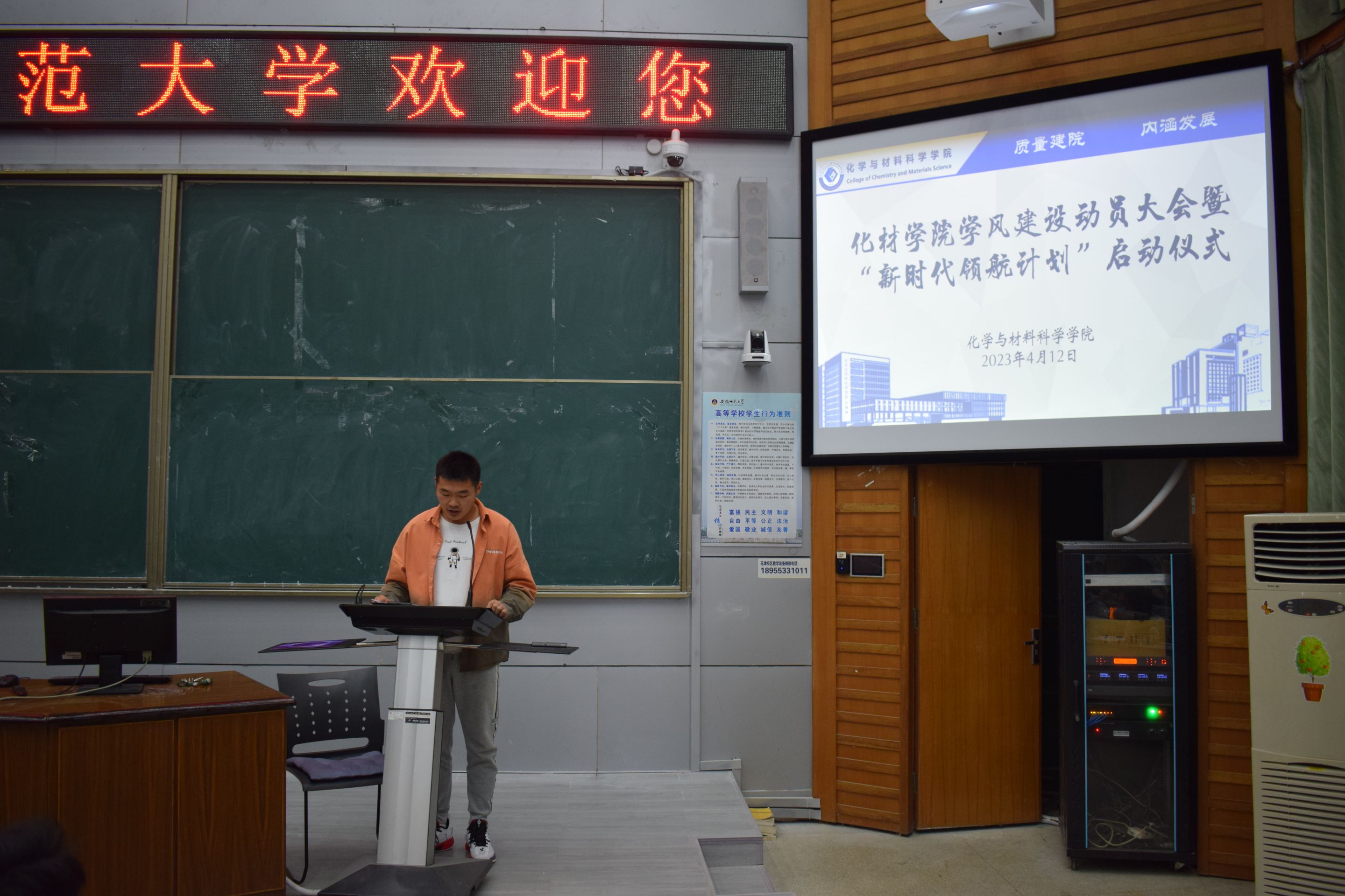 公司团委副书记、辅导员陶勇通过PPT对公司学风建设工作方案和“新时代领航计划”进行了解读,他从总体目标、广泛宣传营造优良学风、以良好的环境推动学风、以严格的管理保障学风、以丰富的活动引领学风等方面介绍了学风建设工作方案的具体举措,从思政领航、管理护航、专业导航、文化引航、服务助航等方面介绍了年度员工工作计划。2020级材料化学专业陈功洋代表公司全体员工宣读了倡议书,倡导每一位化材学子积极响应、积极配合,扎实推进公司学风建设工作,坚持从小事做起,从自身做起,从现在做起,营造优良学风。