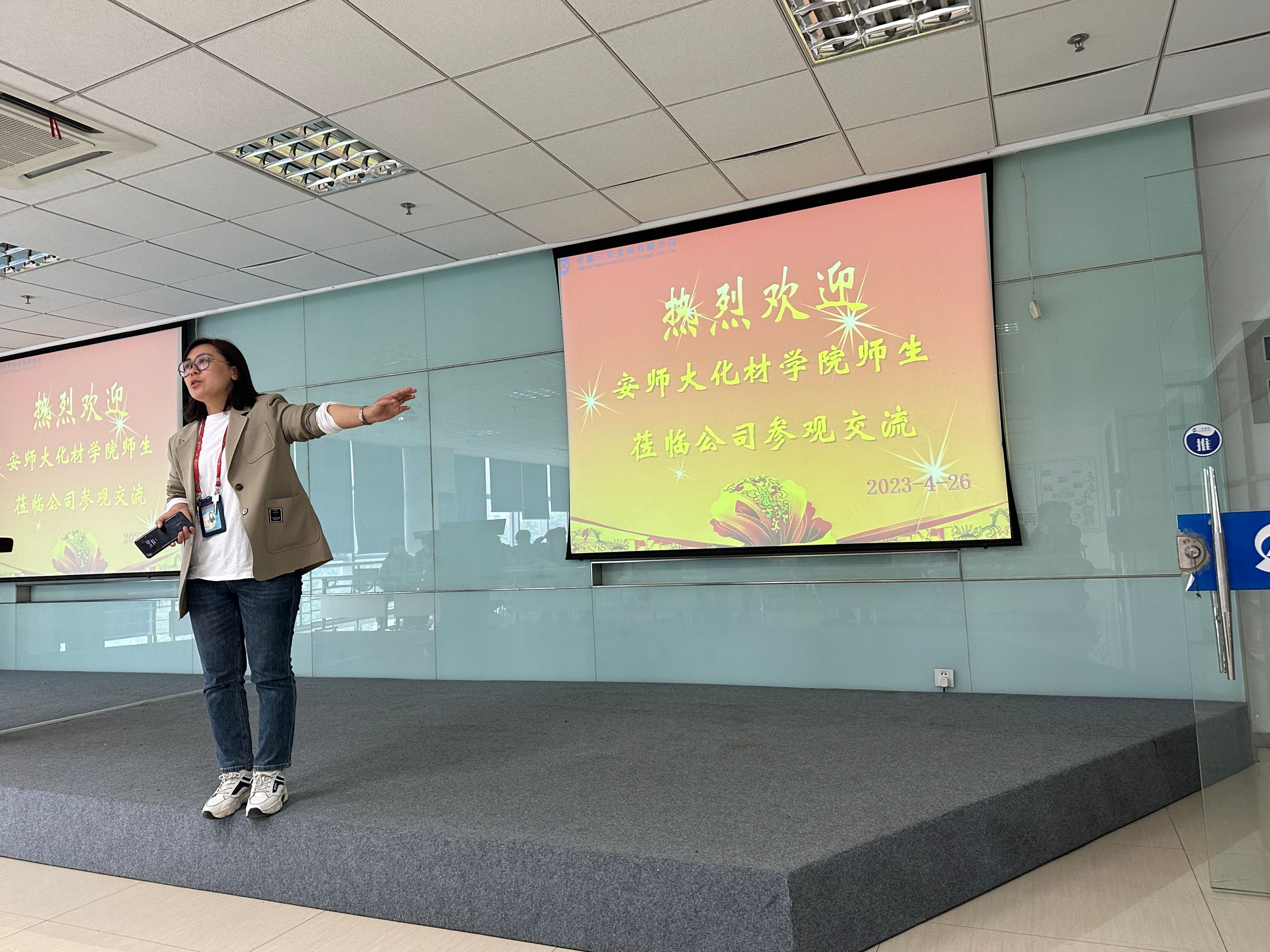 公司员工、英国正版365官方网站毕业生代表——2010级员工罗士文、2012级员工陈雪洁与同学们进行深入沟通交流,现场互动频繁,气氛活跃。员工代表跟随技术人员进入操作车间参观,了解先进的生产设备和工艺。