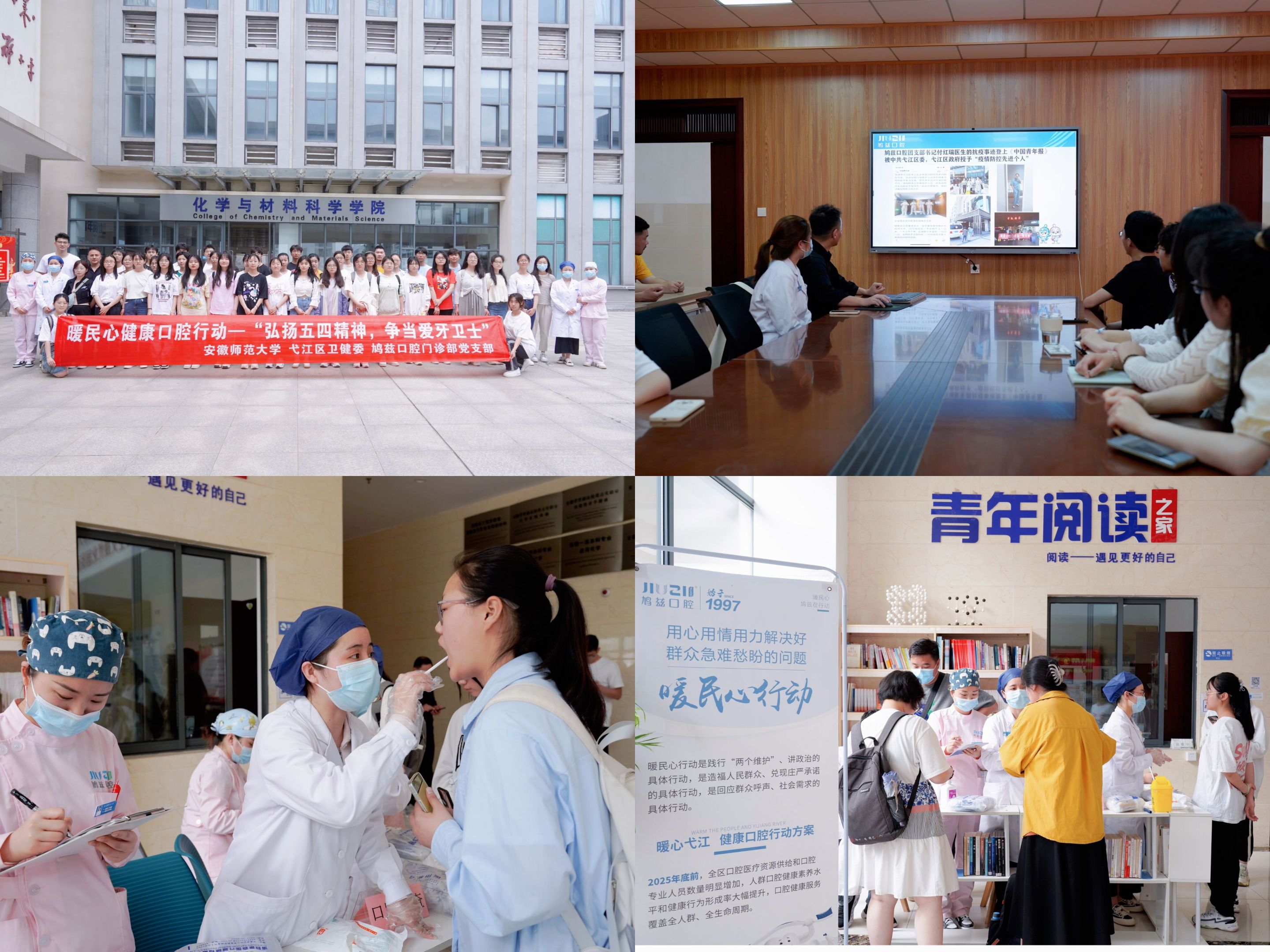 口腔义诊强志愿。为积极响应“暖民心行动”的号召,将健康口腔行动进校园活动与高校结合,提升高校师生口腔健康意识和水平,提高口腔疾病防治知识的知晓率,4月24日至5月4日,公司联合鸠兹口腔医院开展“弘扬五四精神,争当爱牙卫士”--暖民心健康口腔行动走进英国正版365官方网站口腔科普、义诊宣传周主题活动。5月4日下午,鸠兹口腔医生在英国正版365官方网站报告厅为在校员工和教职工做口腔科普知识讲座。化材青年学子将志愿活动和学习生活紧密结合,充分发挥青年人敢想敢为敢奉献的良好品质。