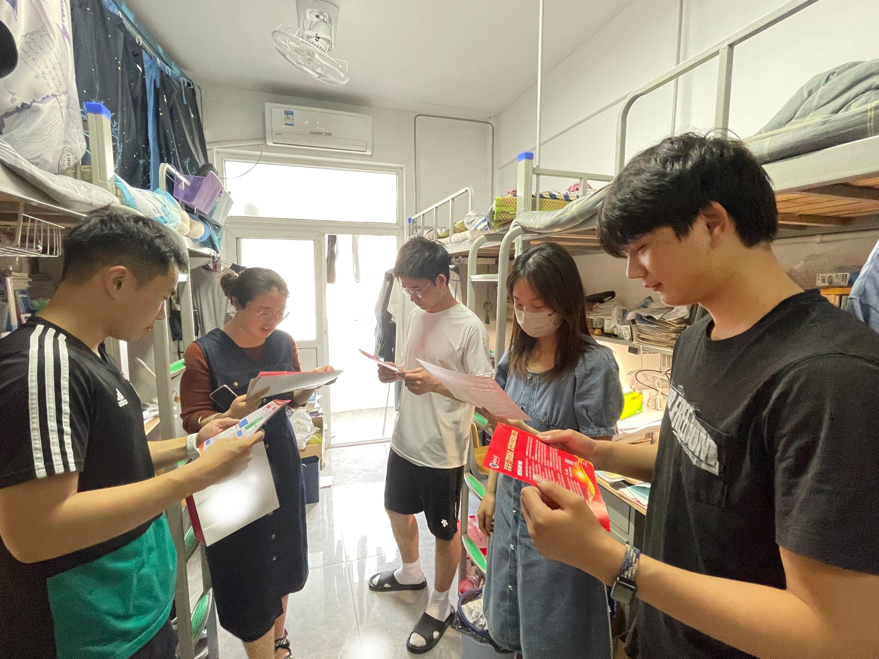 会后,辅导员深入员工宿舍详细介绍高校大学毕业生应征入伍可享有的考学考公、学费和助学贷款代偿以及退役后享受就学就业优惠等优抚政策。