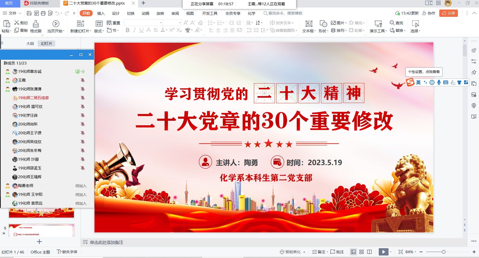 结合此次主题教育基层党员学习的重点,支部书记陶勇首先为支部全体党员开展了专题党课《学习贯彻党的二十大精神——二十大党章的三十个重要修改》,他从中国共产党章程基本概述、党的二十大修改党章的重大意义及二十大党章的30个重要修改详细介绍了新党章较上一部党章作了哪些修改和完善,哪些新的重大思想和理论观点、哪些亮点和特点写了进来。陶勇强调,开展学习贯彻习近平新时代中国特色社会主义思想主题教育具有重大意义,全体支部党员要围绕主题教育的目标要求,持续深入系统学习党的创新理论,用习近平新时代中国特色社会主义思想凝心铸魂,进一步提高思想政治水平,立足本职学习和工作,在新时代新征程中谱写新的篇章。