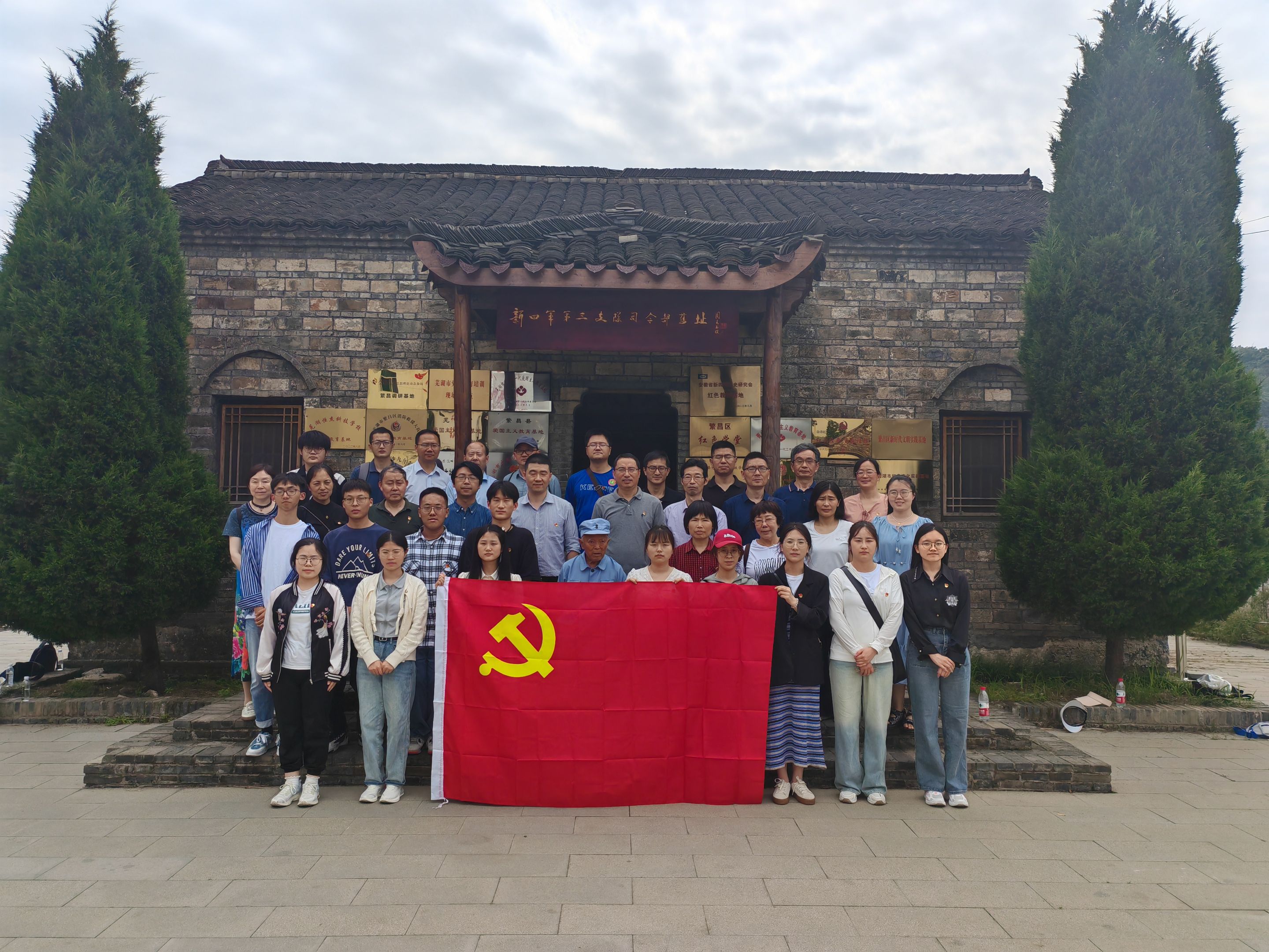 培训会后,师生党员们来到繁昌县孙村镇中分村原谭震林将军旧居、新四军三支队司令部旧址开展实践教学活动。繁昌县中分村为爱国主义教育基地、原新四军三支队司令部所在地,谭震林将军率领新四军三支队在繁昌县及周边地区与日本侵略者展开了艰苦卓绝的斗争。全体党员现场聆听了“中国好人”徐孝旺讲述的新四军在繁昌的战斗历史和谭震林将军在中分村指挥五次繁昌保卫战——歼敌近千名粉碎了日军企图夺取繁昌、“扫荡”皖南阴谋的故事,大家一同参观了谭震林故居和纪念馆,新四军战士们战斗和生活的场景跃然眼前。