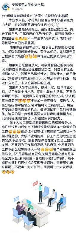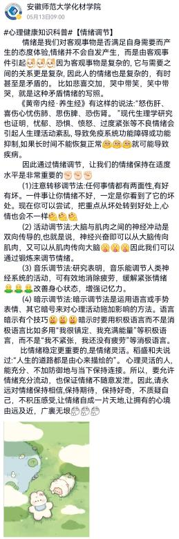 知识科普,理论引行动。公司通过多种途径了解和收集到同学们当下所面临的诸多烦恼,并通过官Q推出一系列心理健康知识科普以及情绪调节的方法,向同学们传授丰富的心理健康知识,以此提高员工们的知识水平,同时拓展员工们的视野。