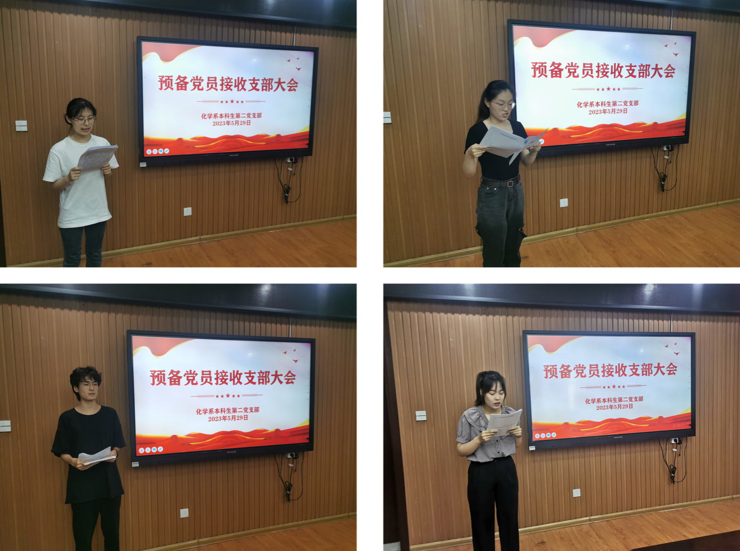 本次会议主要讨论夏焱、许健、邵娴雅等12名发展对象入党,会议严格按照党组织接收预备党员程序召开。会议伊始,发展对象逐一宣读《入党志愿书》,详细说明了自己的入党动机和初心,汇报了自己在培养期间的表现,以及在思想、学习和生活上的提高,努力发挥先锋模范作用。入党介绍人陶勇、王芳以及王霞同志分别从思想、学习、工作等方面向大会介绍了发展对象的有关情况,并对其是否同意和推荐其入党表明意见。支委章志诚同志向大会报告发展对象的政治审查情况,与会党员对发展对象能否入党进行充分讨论并发表意见。在与会党员对发展对象发表意见并提出问题后,发展对象对大家所提意见进行了综合表态。大会一致认为,夏焱等12名同志基本符合党员条件,经与会正式党员投票表决,大会一致同意接收夏焱等12名同志为中共预备党员,拟提交上级党组织审核。