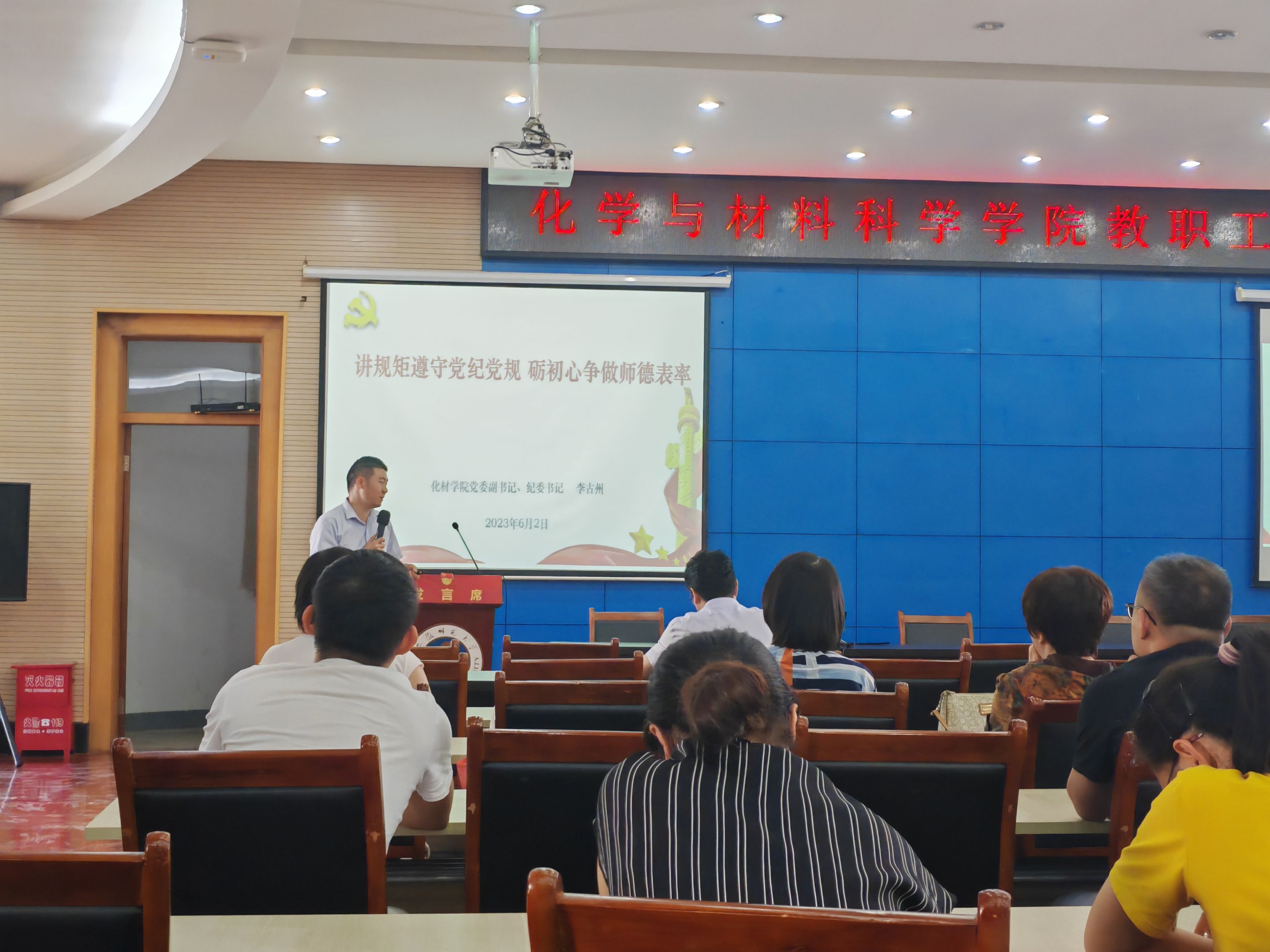院纪委书记李古州为全体教职工讲授题为《讲规矩遵守党规党纪 砺初心争做师德表率》专题师德师风党课。
