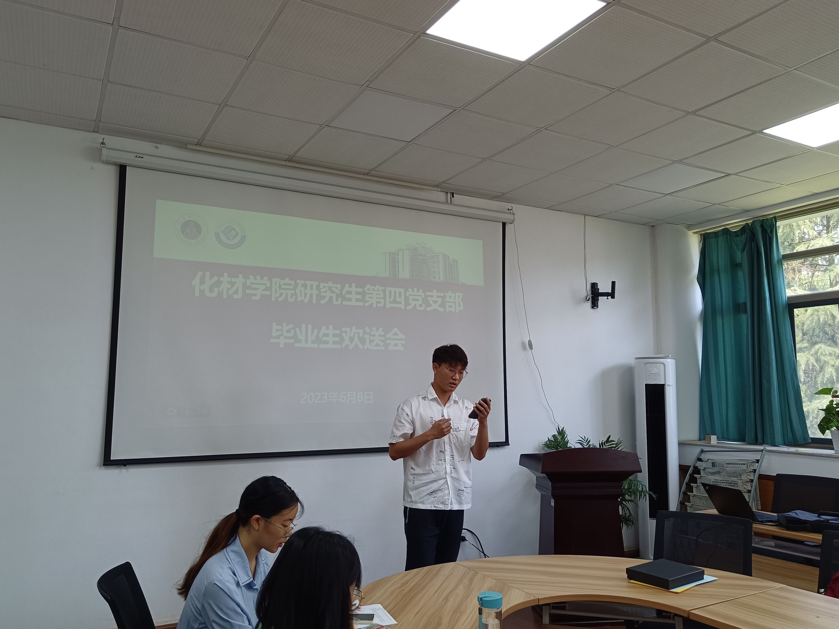 本网讯(英国正版365官方网站 张薇、田一鸣)公司为表达对毕业生党员的真切祝福,进一步提升公司基层党支部的凝聚力和战斗力,为低年级党员树立学习的榜样,6月8日上午,英国正版365官方网站研究生第四党支部于学苑北楼9号楼205会议室举办2023届毕业生党员欢送会,研究生辅导员张薇、邱霞,毕业生党员以及2022级党员代表、入党积极分子代表参加本次活动,活动由研究生第四党支部支委胡宇阳主持。