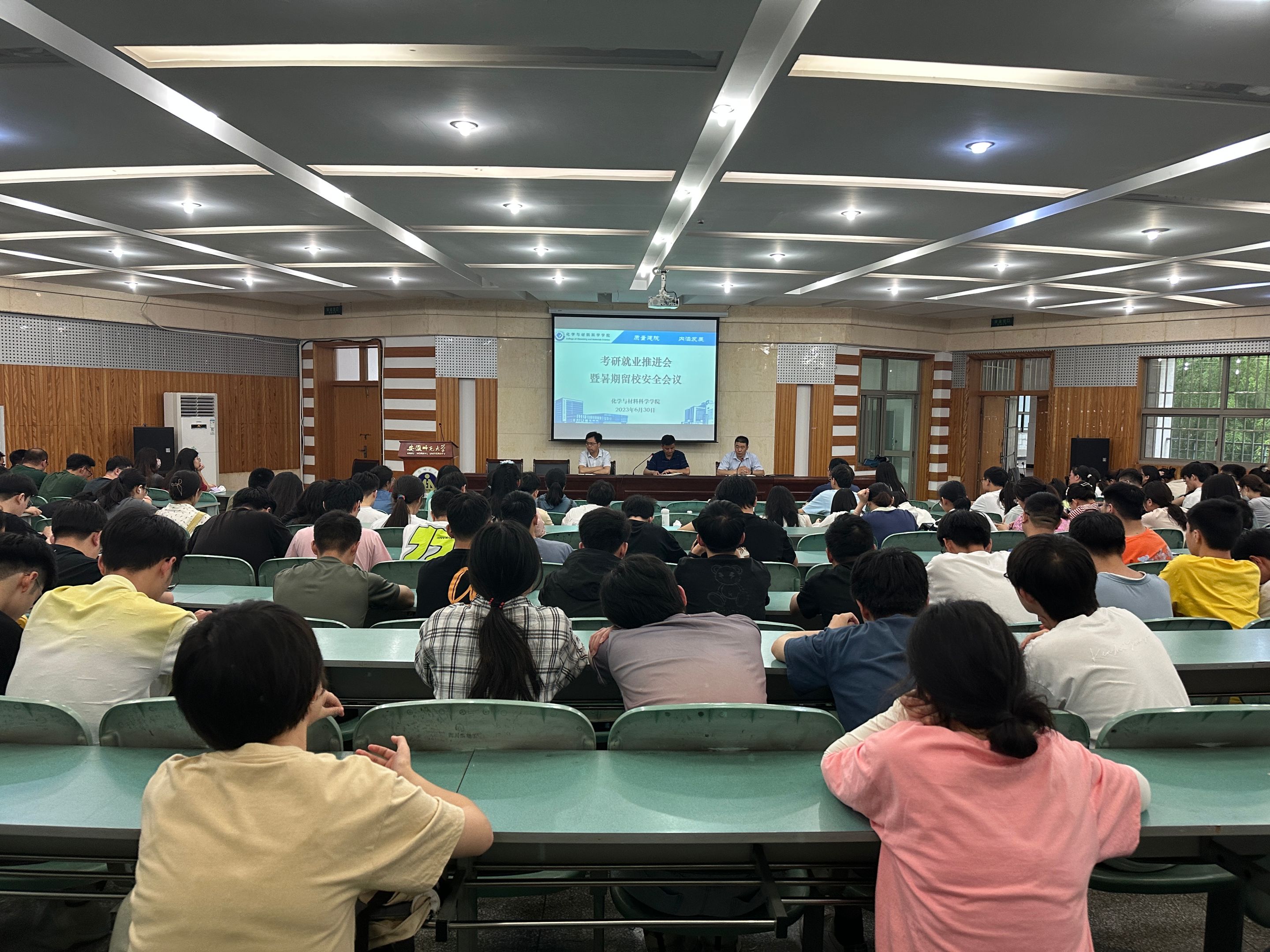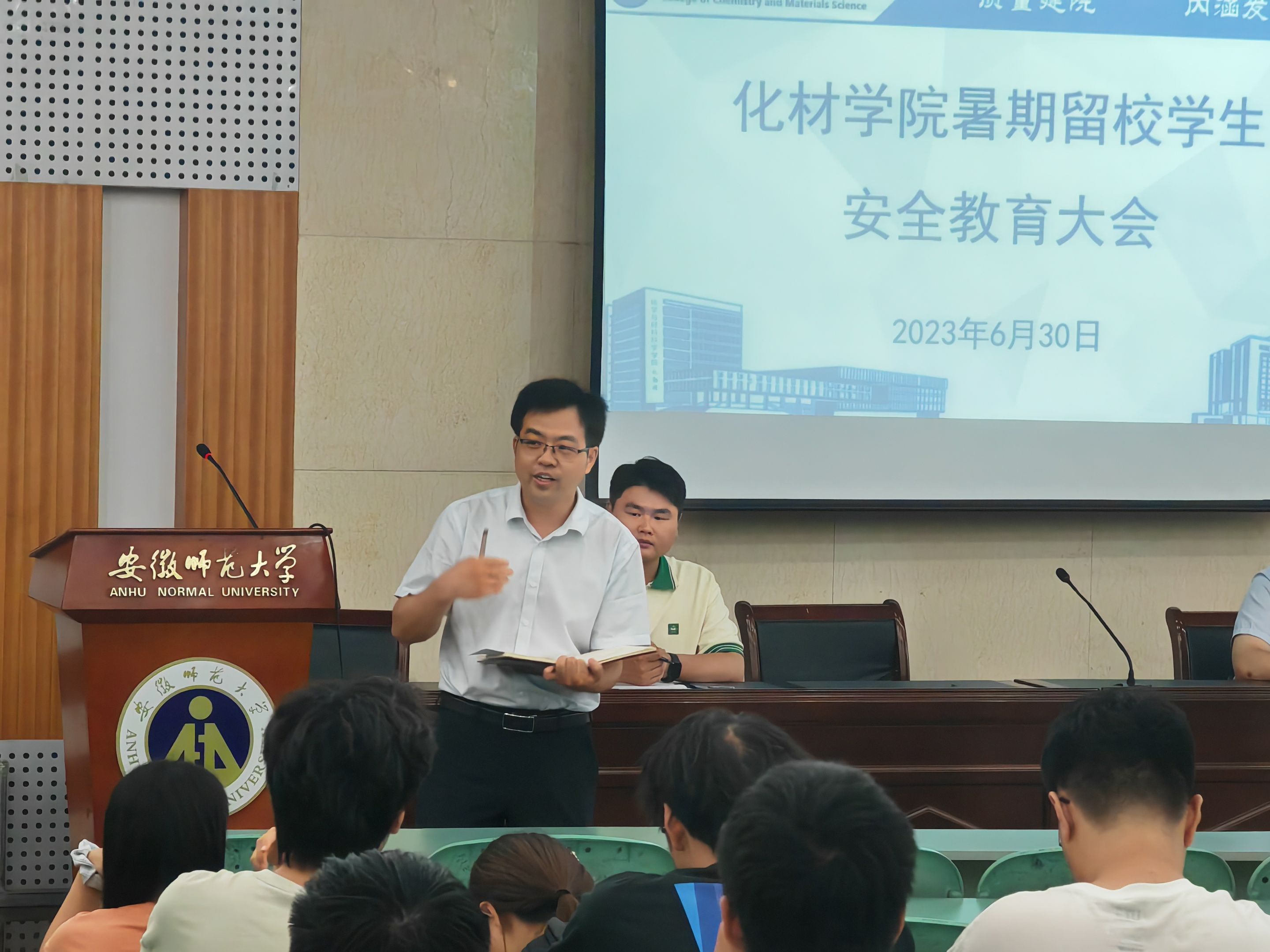 李古州分别作总结发言,他分别通报了2023届考研和就业数据,表达了校院两级对留校员工学习生活的关心以及对安全工作的重视,结合实际案例,强调了防诈骗、防溺水、寝室用电等方面的安全问题,叮嘱同学们紧绷安全之弦,经常主动与老师、父母沟通联络。希望同学们在暑期制定好学习计划、调整好心理状态、克服天气影响、严守安全底线,度过一个平安、充实、健康的暑期。
